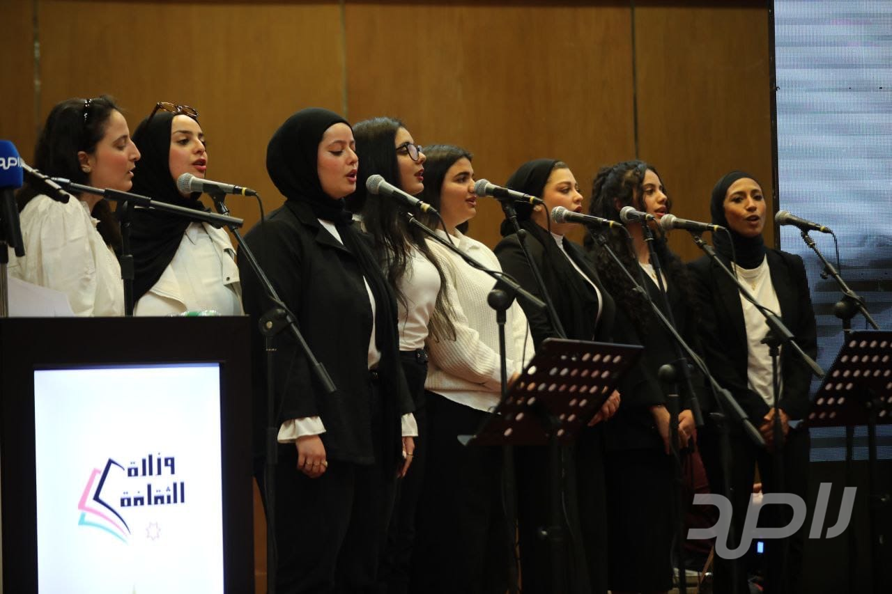 واشتمل الاحتفال الذي جاء على جزأين وحضره مدراء المديرات في الوزارة وعدد كبير من رؤساء الجمعيات والهيئات الثقافية وجمهور كبير، على عرض غنائي موسيقي قدمته فرقة وكورال طلبة معهد الفنون الجميلة التابع للوزارة والتي ضمت 18 شابا وشابة من أعضاء الكورال الغنائي و9 من العازفين والعازفات، وسط تفاعل كبير من الجمهور.