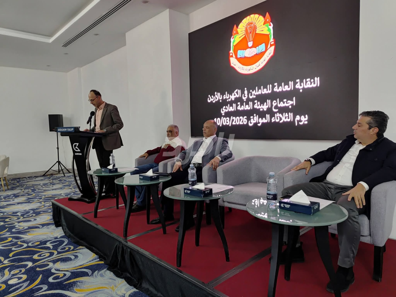 عقدت النقابة العامة للعاملين بالكهرباء في الأردن اجتماع الهيئة العامة العادي، برئاسة رئيس النقابة فخري العجارمة، وبحضور نائب رئيس الاتحاد العام لنقابات عمال الأردن، عضو المكتب التنفيذي للاتحاد خالد أبو مرجوب، إلى جانب أعضاء الهيئة الإدارية وممثلي اللجان النقابية في الشركات العاملة في قطاع الكهرباء.