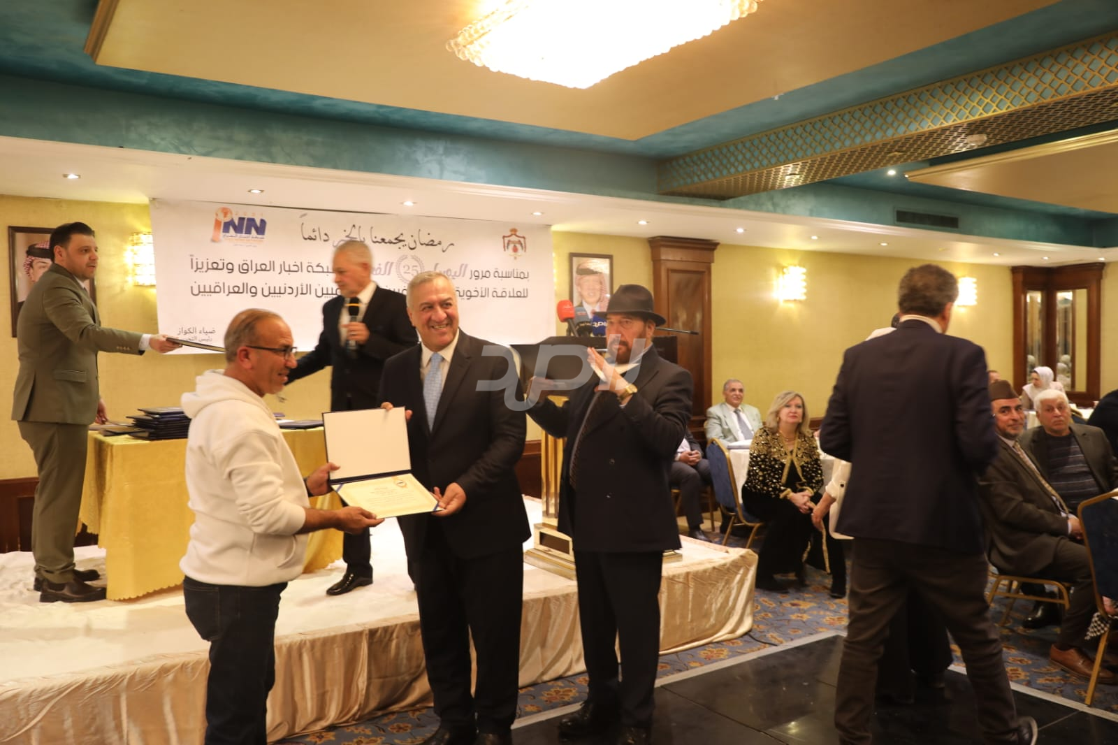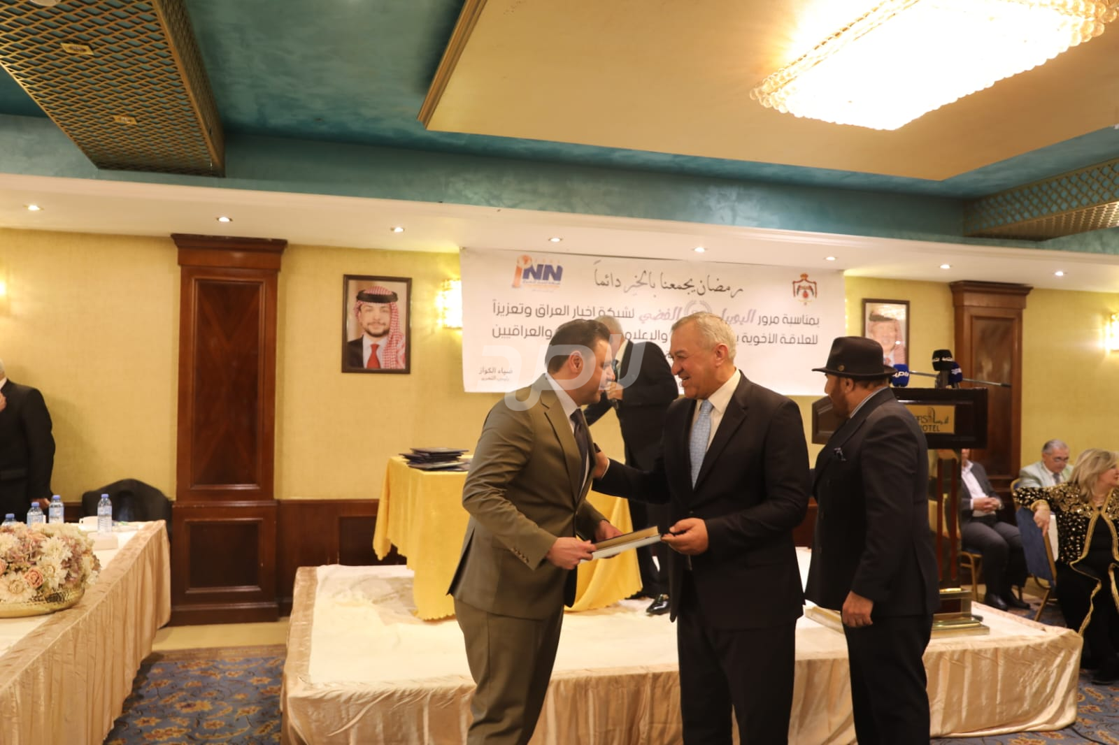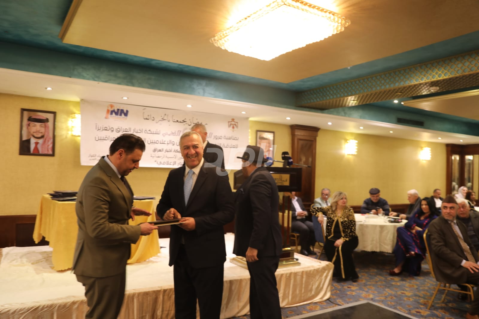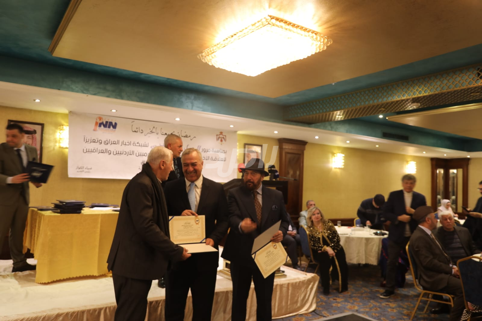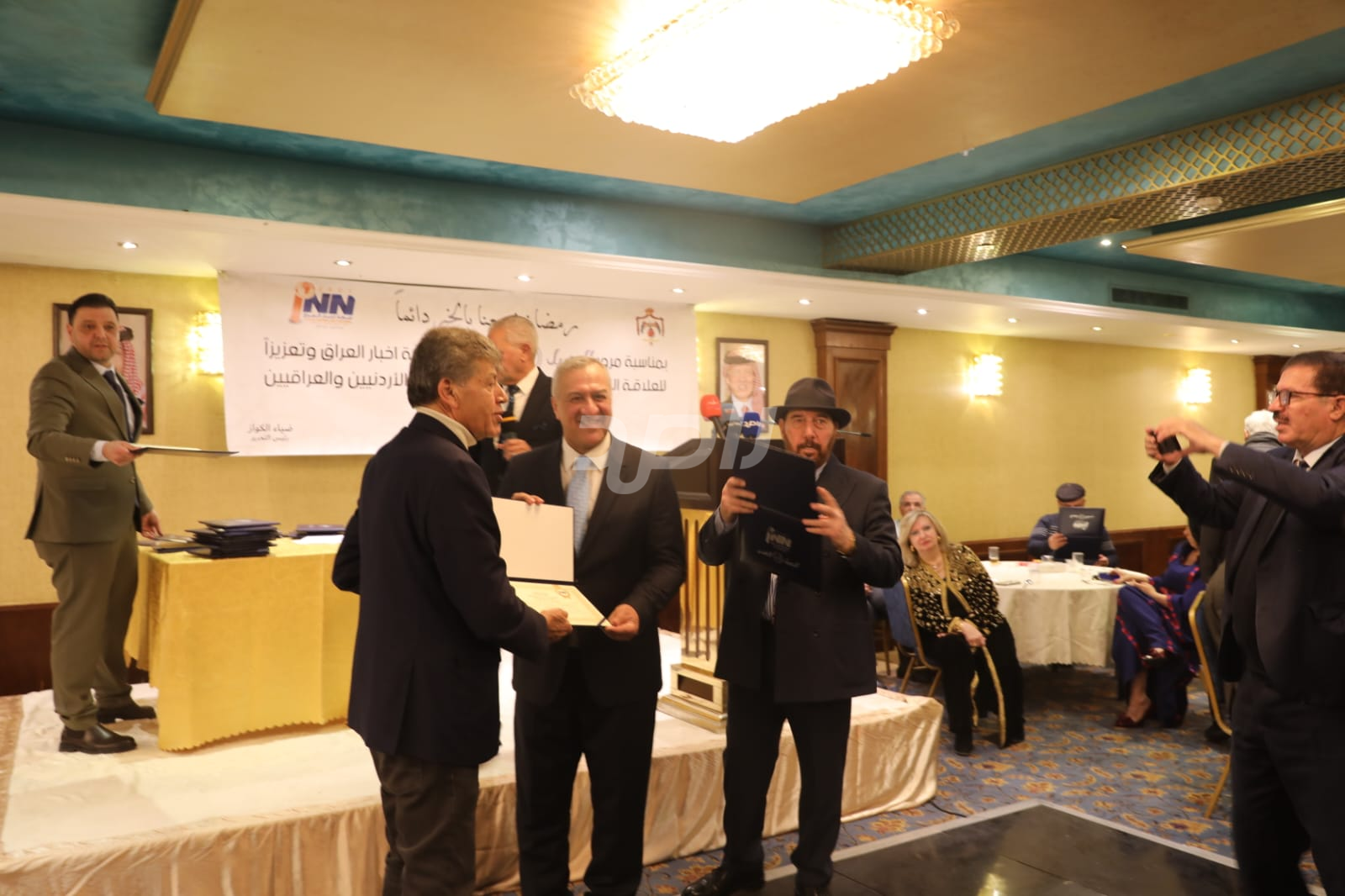 ولم يخلُ الحفل من لمسات الوفاء والتقدير، حيث تضمن حفل "السحور الإعلامي" تكريماً خاصاً لمعظم وسائل الإعلام الأردنية الحاضرة، تقديراً لجهودها وتعاونها المستمر. وقام بتقديم الدروع التذكارية للمكرمين ، باسم شبكة أخبار العراق، في لفتة رمزية عكست روح التعاون والشراكة الحقيقية بين الإعلام الأردني والعراقي، وأكدت على متانة العلاقة التي تجمع الأسرة الإعلامية في البلدين الشقيقين.