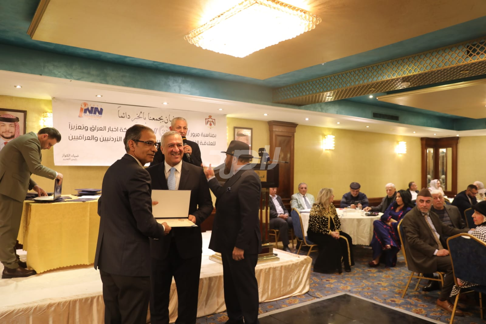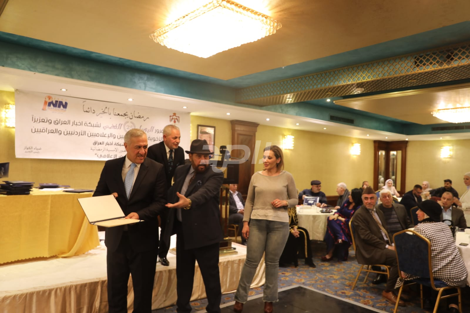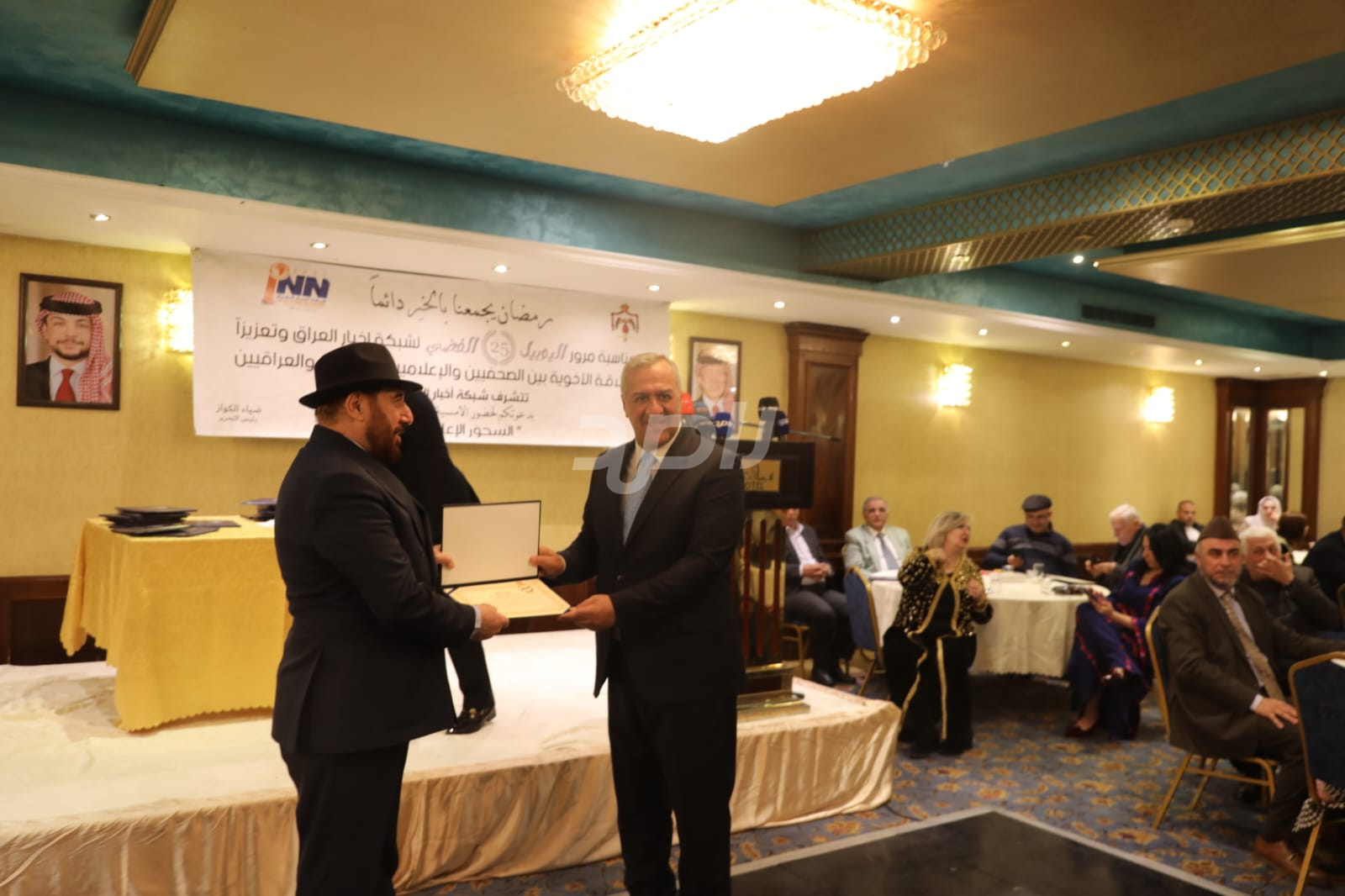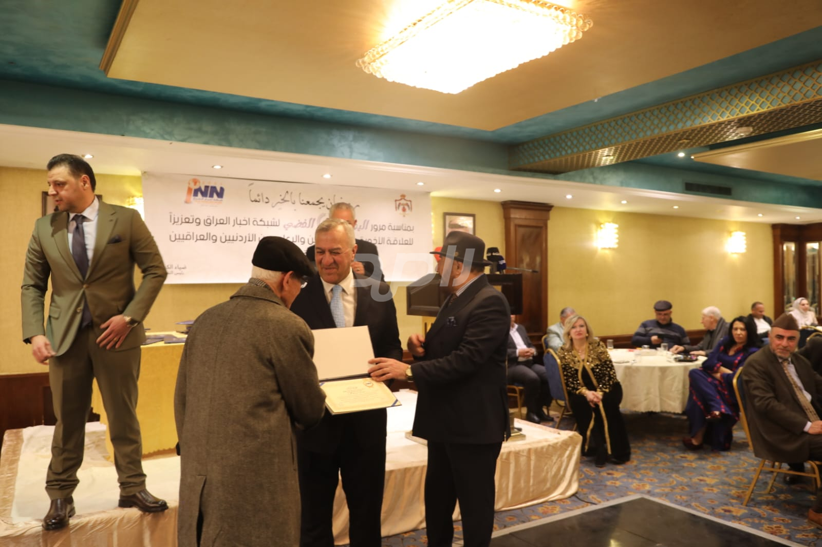 ولم يخلُ الحفل من لمسات الوفاء والتقدير، حيث تضمن حفل "السحور الإعلامي" تكريماً خاصاً لمعظم وسائل الإعلام الأردنية الحاضرة، تقديراً لجهودها وتعاونها المستمر. وقام بتقديم الدروع التذكارية للمكرمين ، باسم شبكة أخبار العراق، في لفتة رمزية عكست روح التعاون والشراكة الحقيقية بين الإعلام الأردني والعراقي، وأكدت على متانة العلاقة التي تجمع الأسرة الإعلامية في البلدين الشقيقين.