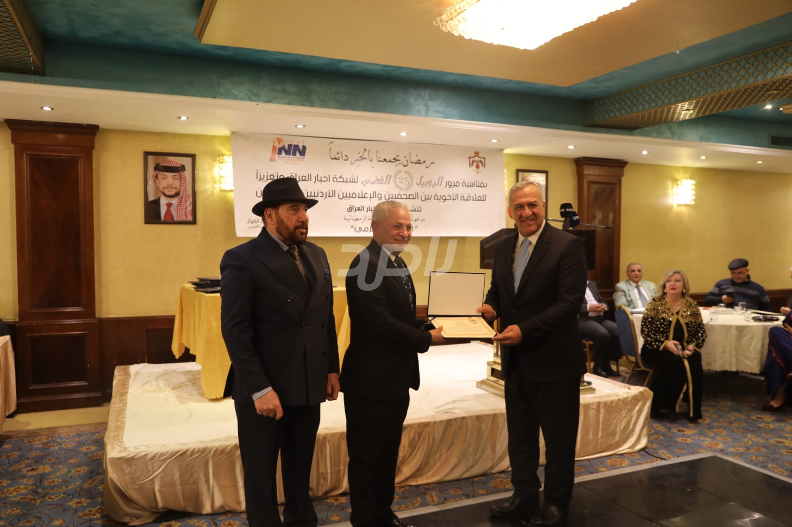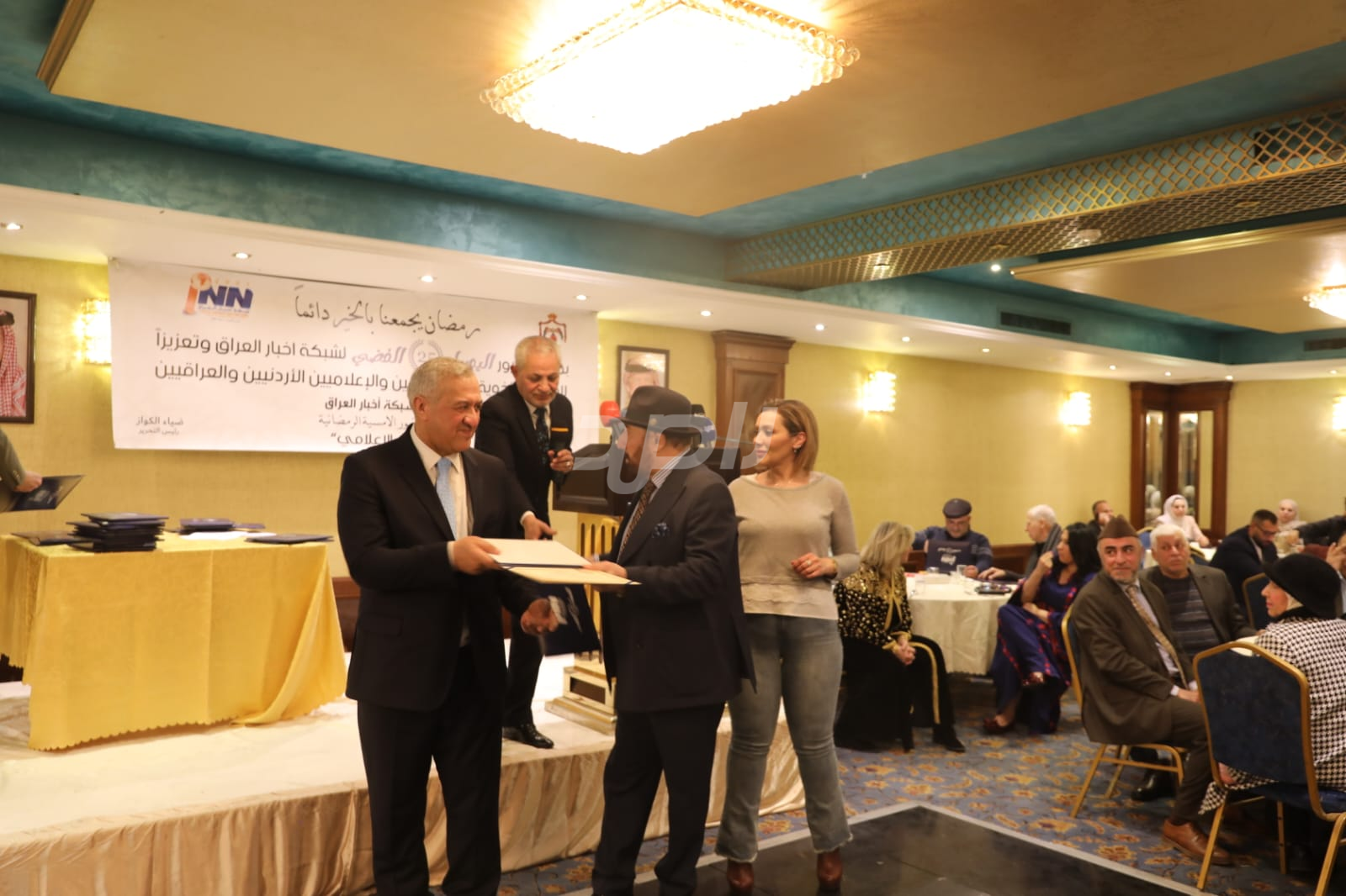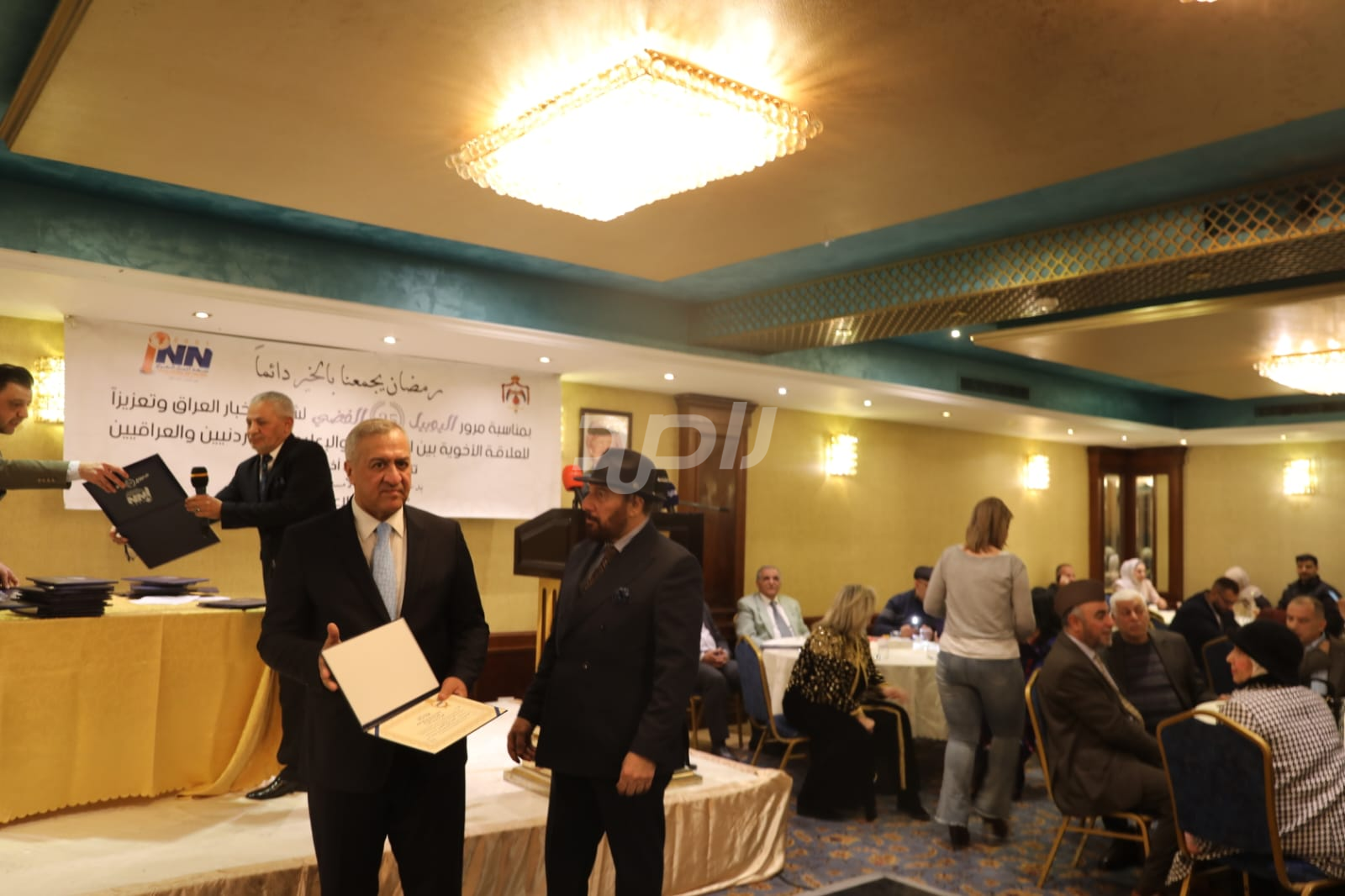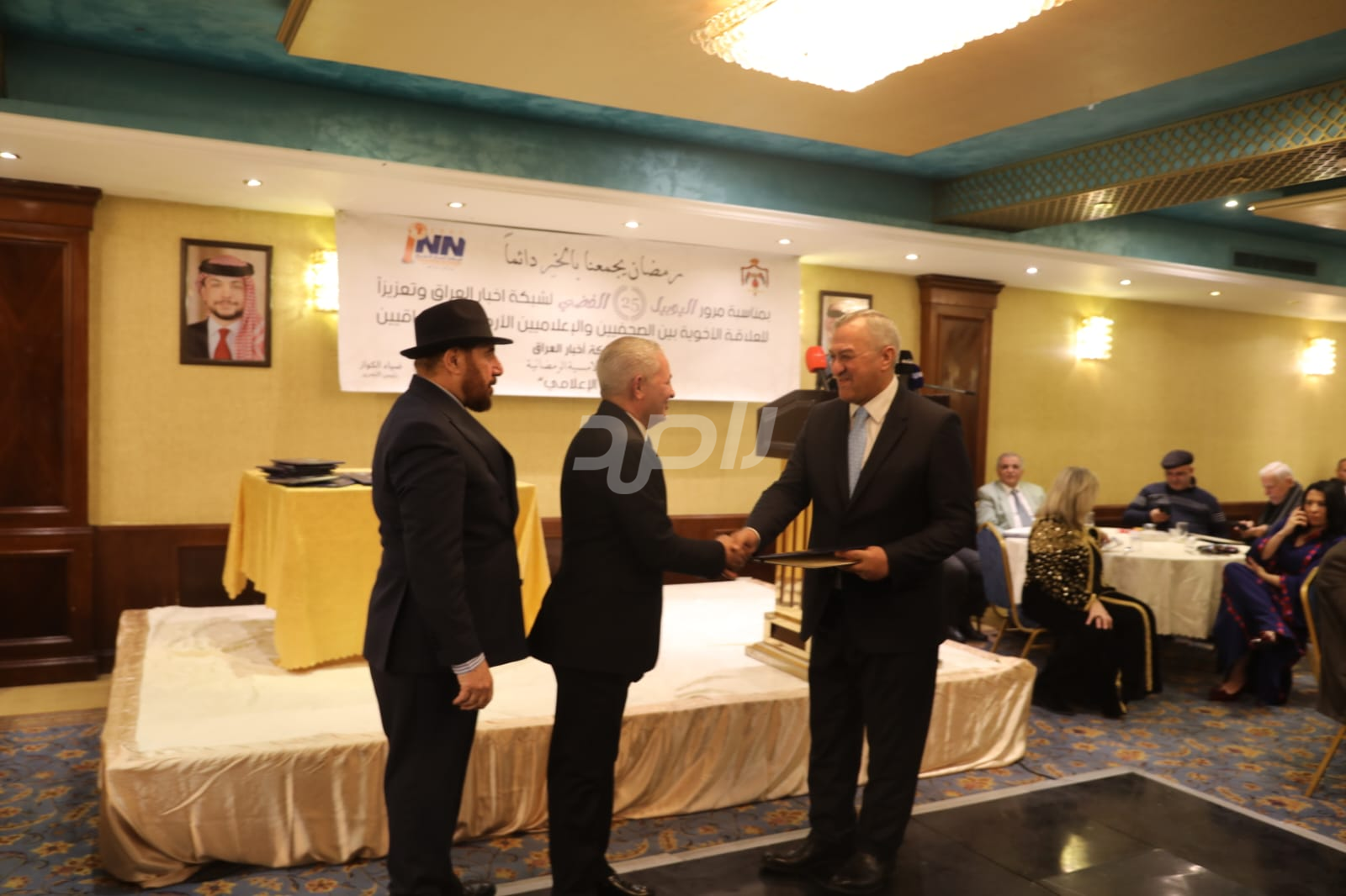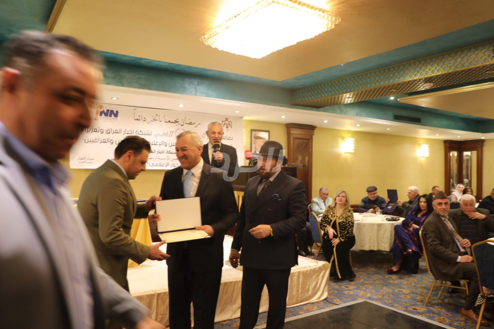 ولم يخلُ الحفل من لمسات الوفاء والتقدير، حيث تضمن حفل "السحور الإعلامي" تكريماً خاصاً لمعظم وسائل الإعلام الأردنية الحاضرة، تقديراً لجهودها وتعاونها المستمر. وقام بتقديم الدروع التذكارية للمكرمين ، باسم شبكة أخبار العراق، في لفتة رمزية عكست روح التعاون والشراكة الحقيقية بين الإعلام الأردني والعراقي، وأكدت على متانة العلاقة التي تجمع الأسرة الإعلامية في البلدين الشقيقين.