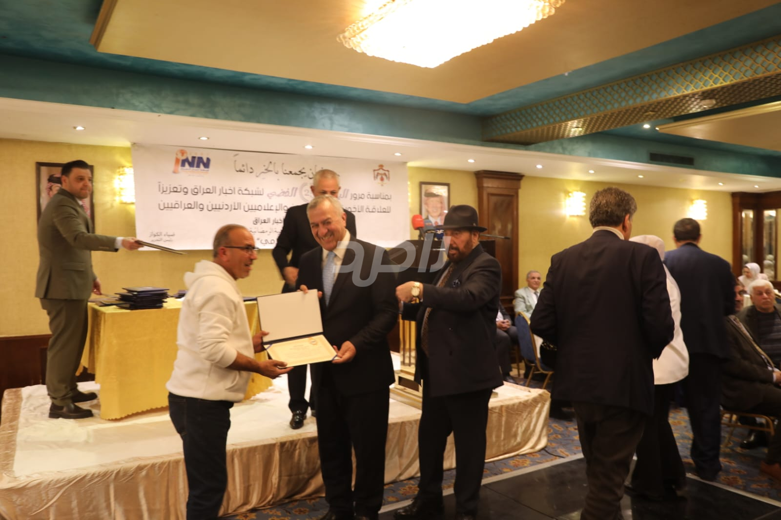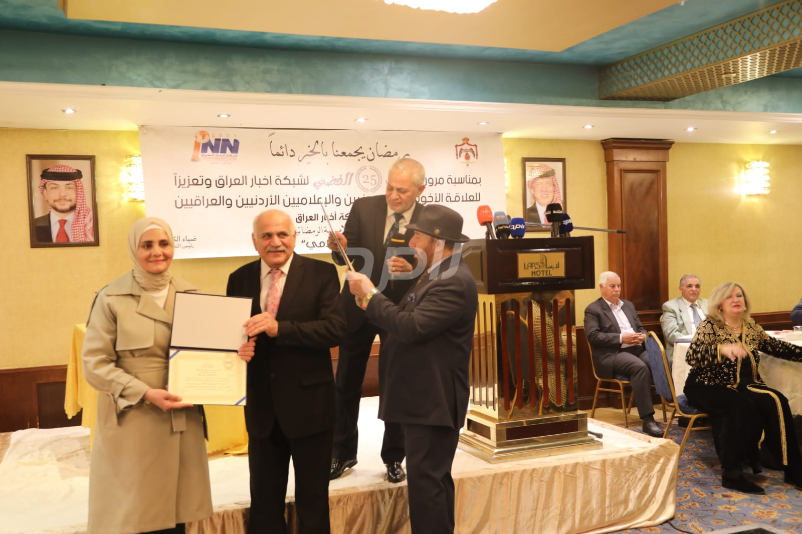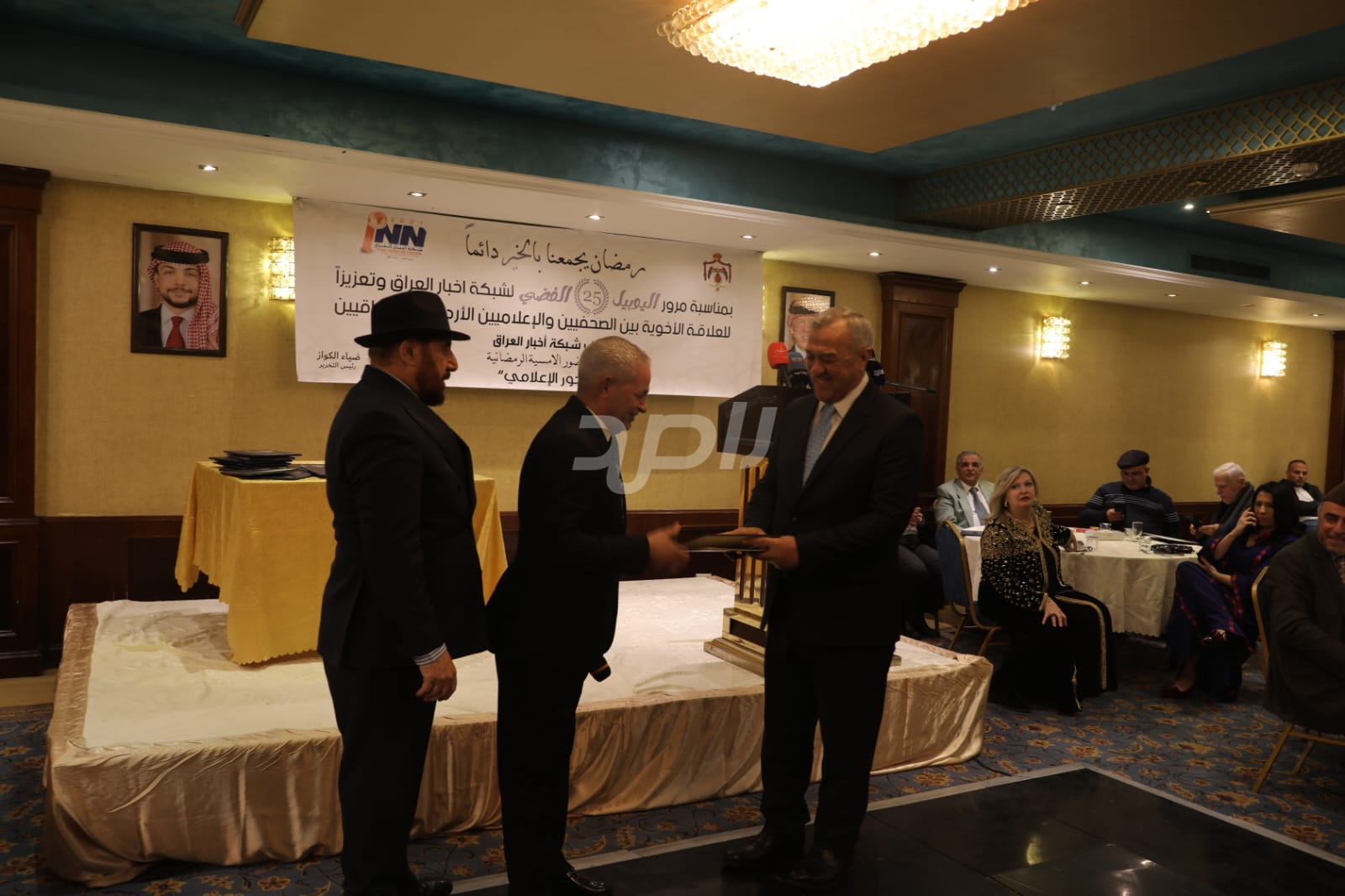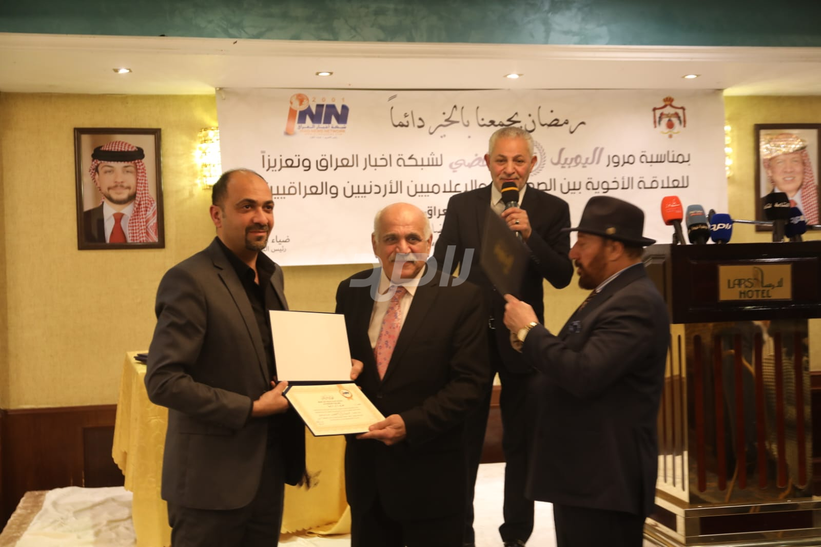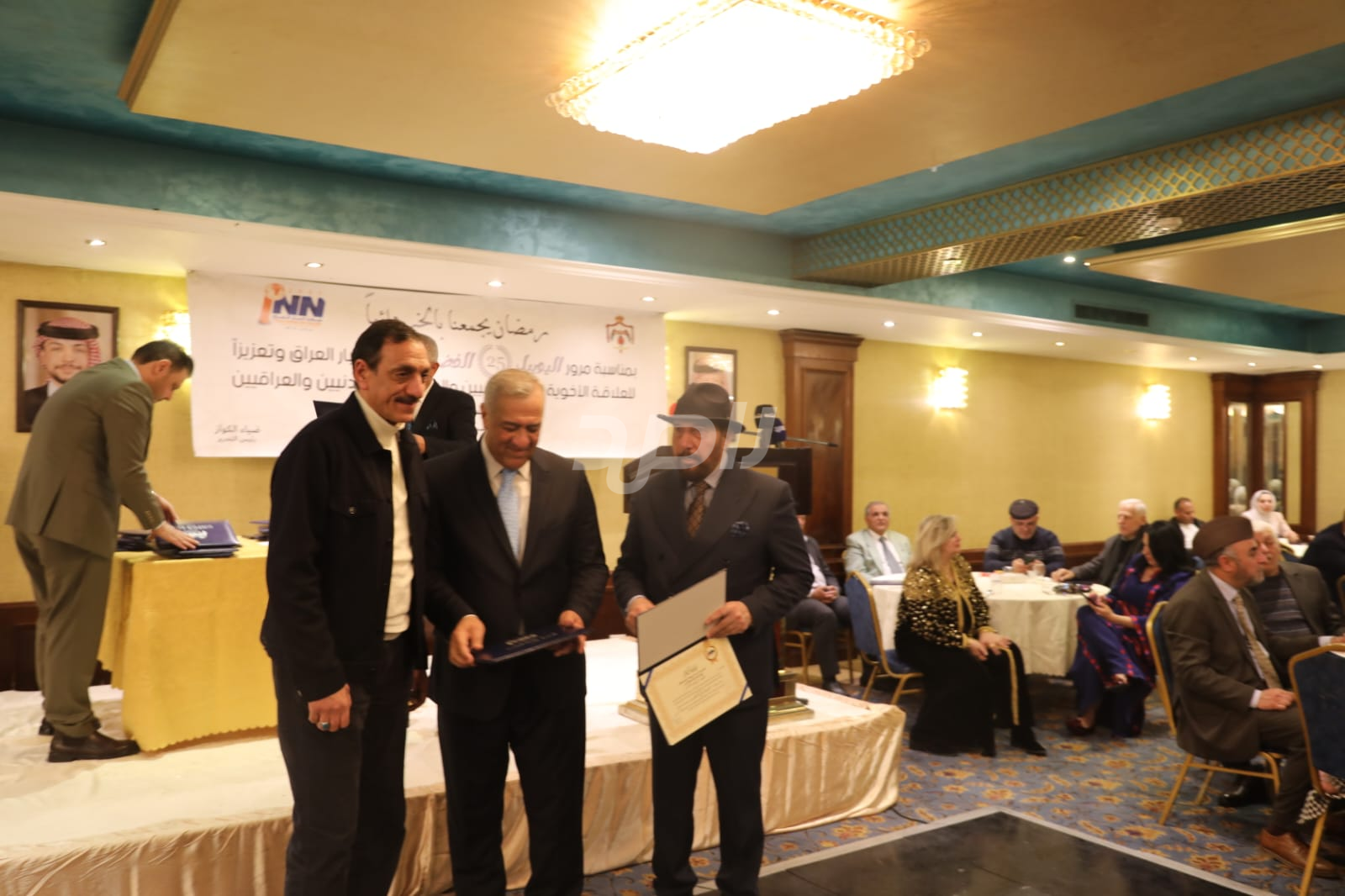 ولم يخلُ الحفل من لمسات الوفاء والتقدير، حيث تضمن حفل "السحور الإعلامي" تكريماً خاصاً لمعظم وسائل الإعلام الأردنية الحاضرة، تقديراً لجهودها وتعاونها المستمر. وقام بتقديم الدروع التذكارية للمكرمين ، باسم شبكة أخبار العراق، في لفتة رمزية عكست روح التعاون والشراكة الحقيقية بين الإعلام الأردني والعراقي، وأكدت على متانة العلاقة التي تجمع الأسرة الإعلامية في البلدين الشقيقين.