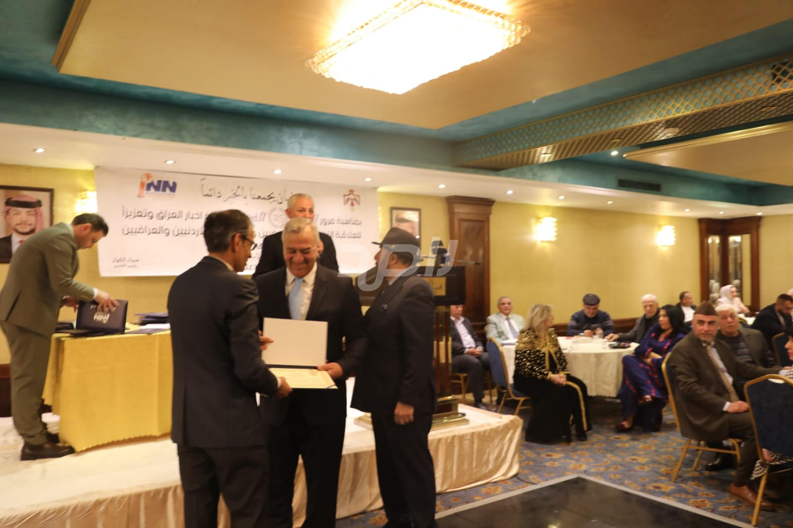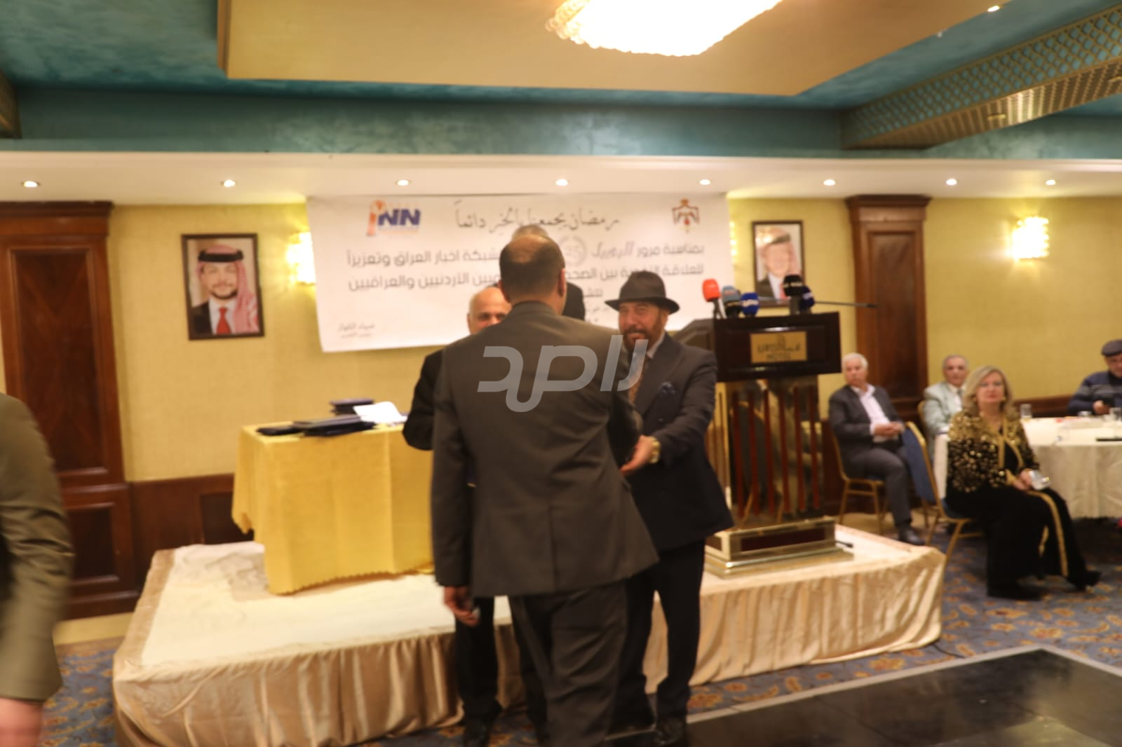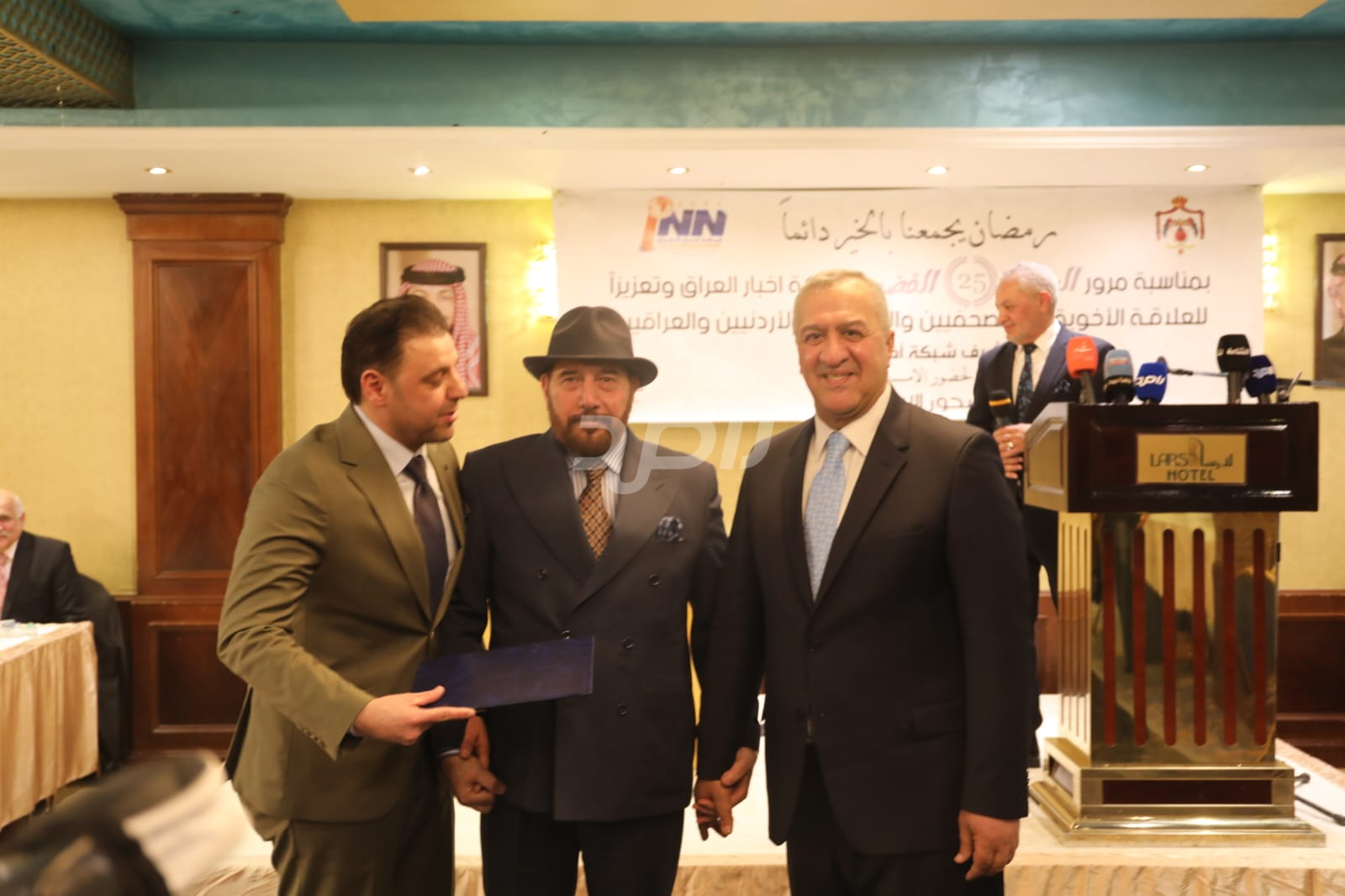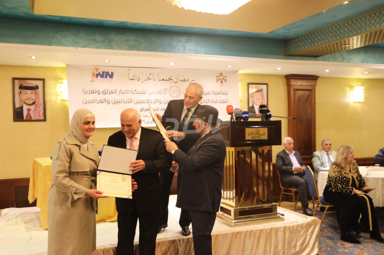 ولم يخلُ الحفل من لمسات الوفاء والتقدير، حيث تضمن حفل "السحور الإعلامي" تكريماً خاصاً لمعظم وسائل الإعلام الأردنية الحاضرة، تقديراً لجهودها وتعاونها المستمر. وقام بتقديم الدروع التذكارية للمكرمين ، باسم شبكة أخبار العراق، في لفتة رمزية عكست روح التعاون والشراكة الحقيقية بين الإعلام الأردني والعراقي، وأكدت على متانة العلاقة التي تجمع الأسرة الإعلامية في البلدين الشقيقين.