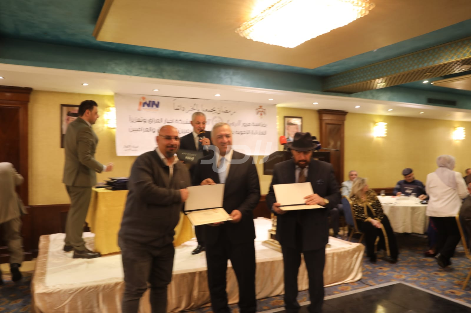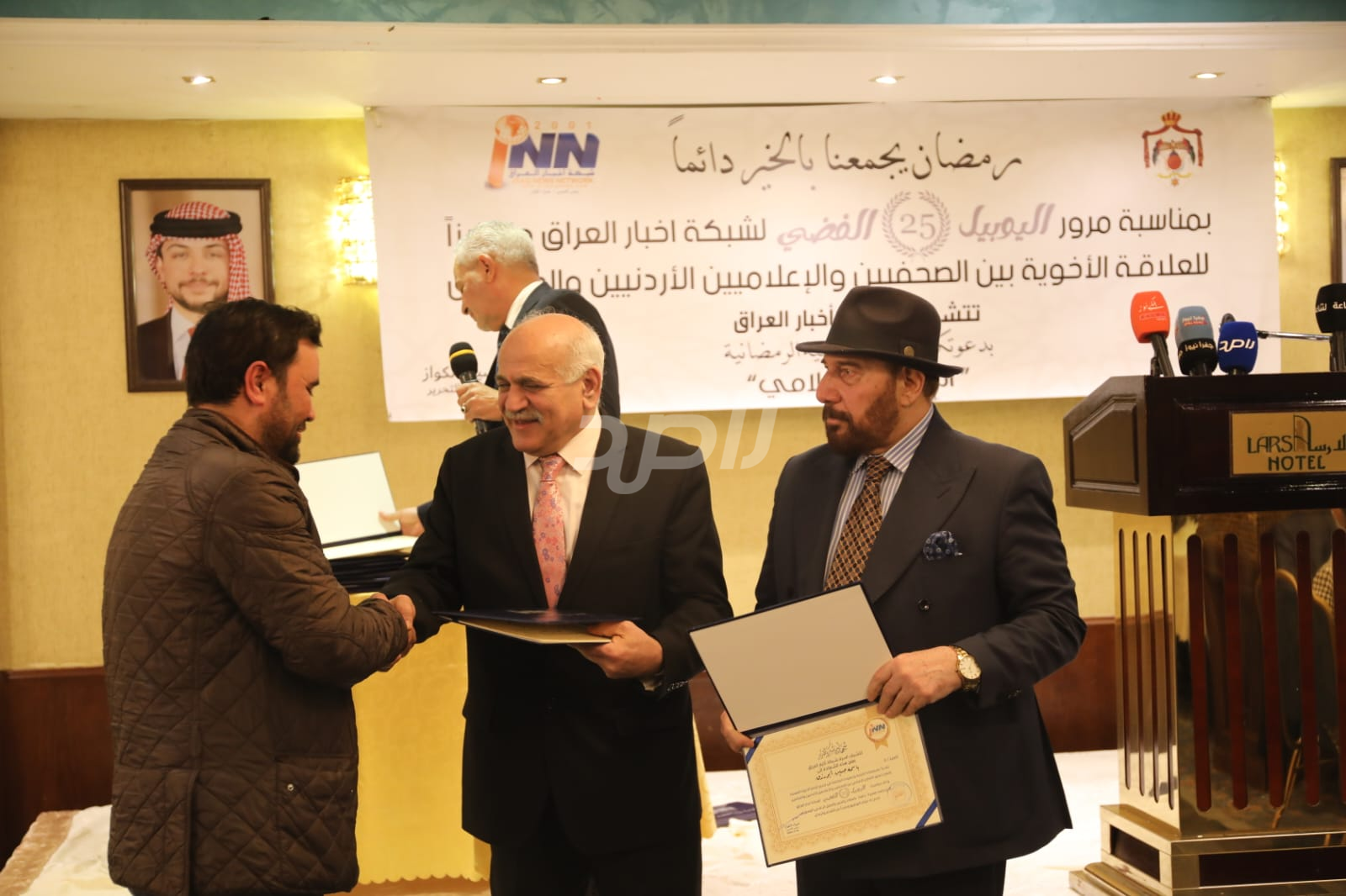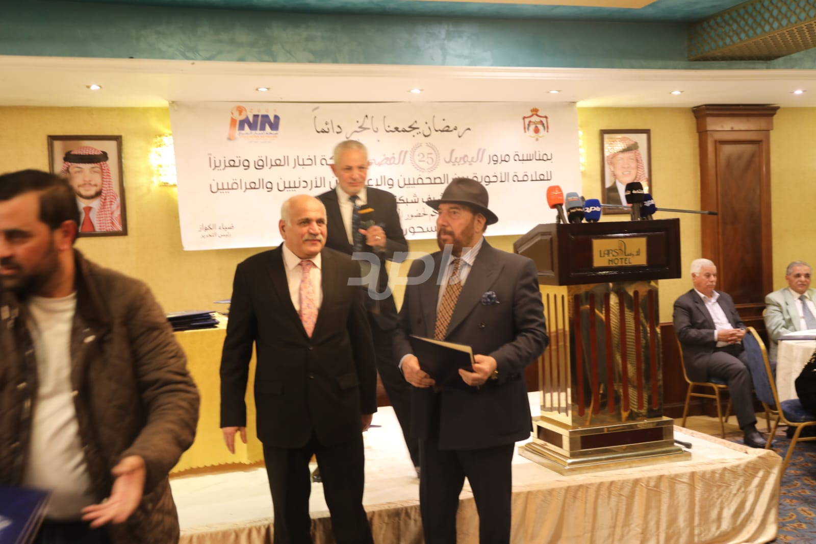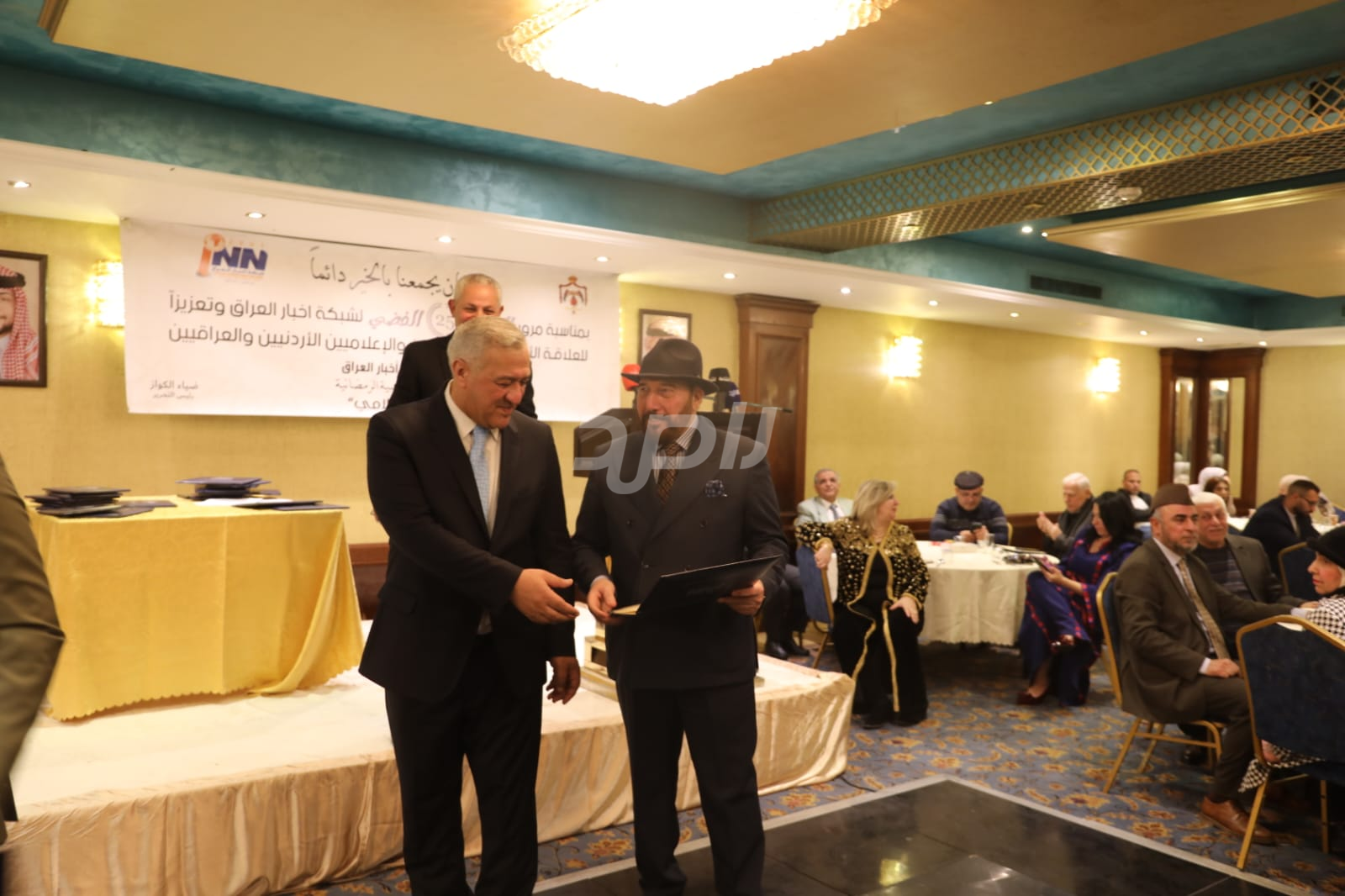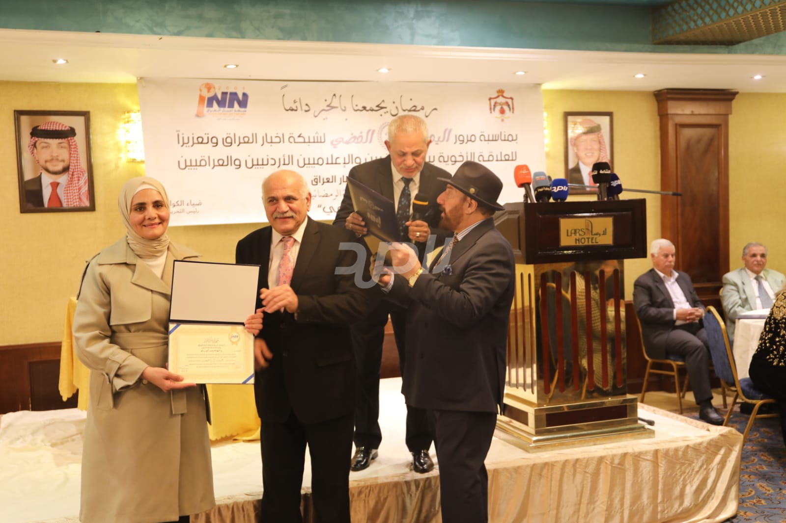 ولم يخلُ الحفل من لمسات الوفاء والتقدير، حيث تضمن حفل "السحور الإعلامي" تكريماً خاصاً لمعظم وسائل الإعلام الأردنية الحاضرة، تقديراً لجهودها وتعاونها المستمر. وقام بتقديم الدروع التذكارية للمكرمين ، باسم شبكة أخبار العراق، في لفتة رمزية عكست روح التعاون والشراكة الحقيقية بين الإعلام الأردني والعراقي، وأكدت على متانة العلاقة التي تجمع الأسرة الإعلامية في البلدين الشقيقين.