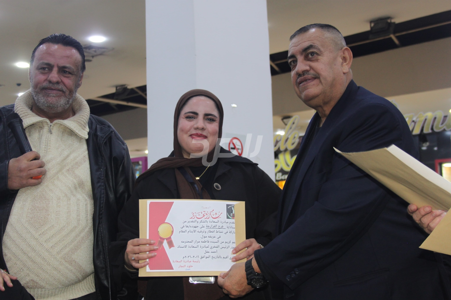عمان - الاثنين - 16 آذار 2026 - في ليلة رمضانية مفعمة بالمشاعر الإنسانية النبيلة، نظمت مبادرة السعادة نشاط إفطار وترفيه الأيتام في مجمع عريفة مول، بحضور الرئيس الفخري للمبادرة الأستاذ أحمد عقل، وعدد من الشخصيات الوطنية البارزة وفي مقدمتهم الباشا حسان المجالي، والدكتور محمد الحجايا، وعطوفة المهندس محمد الطيطي، والدكتورة هناء العبادي، إضافة إلى جمع غفير من المشاركين وأعضاء المبادرة الكرام، في مشهد يعكس أسمى معاني التكافل الاجتماعي والتراحم في الشهر الفضيل.