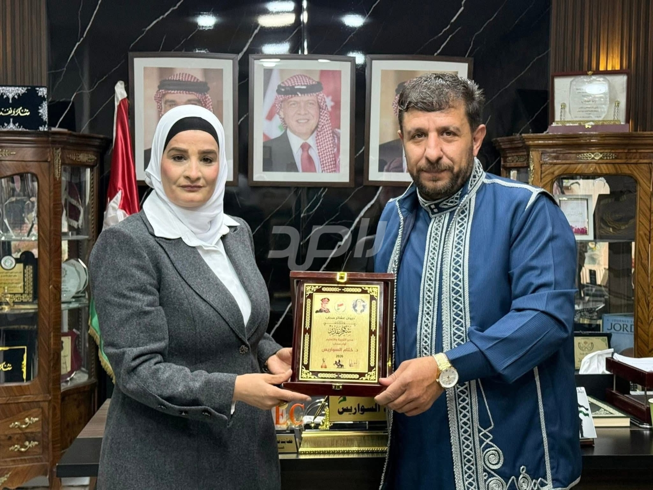 وفي لفتة تقديرية تعكس الاحترام الكبير لدور القيادات التربوية الفاعلة، قدّم وفد ديوان عشائر سحاب درعًا تكريميًا للسواريس، تعبيرًا عن اعتزازهم بالدور الكبير الذي تقوم به في خدمة قطاع التعليم وتعزيز مسيرته في اللواء، ودفع عجلة الإنجاز التربوي نحو آفاق أرحب بالتعاون مع مؤسسات المجتمع المحلي.