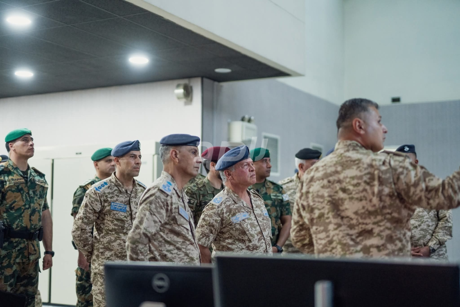 وجال جلالة الملك في مركز القيادة والسيطرة، حيث تابع عمل إدارة العمليات الجوية وأنظمة الرصد والمتابعة، ودورها في رفع كفاءة الاستجابة لمختلف التهديدات، بما يعزز حماية أجواء المملكة.