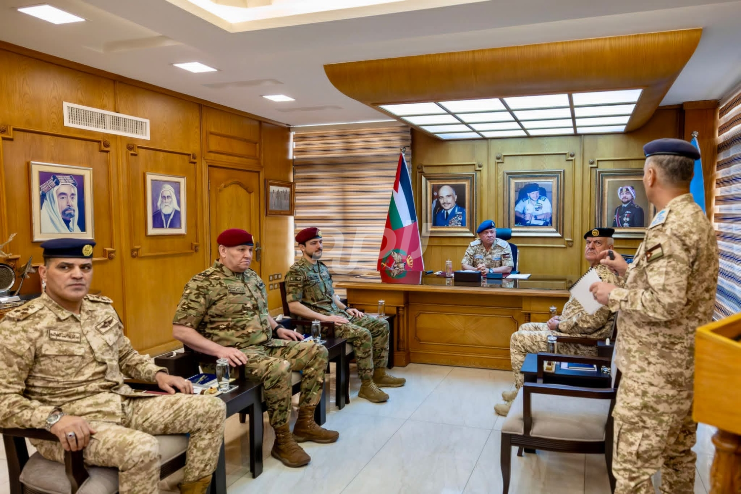 واستمع جلالته، بحضور رئيس هيئة الأركان المشتركة اللواء الركن يوسف أحمد الحنيطي، إلى إيجاز قدمه قائد سلاح الجو الملكي حول أبرز المستجدات العملياتية، والجاهزية القتالية والقدرات الدفاعية، وخطط التحديث والتطوير.
