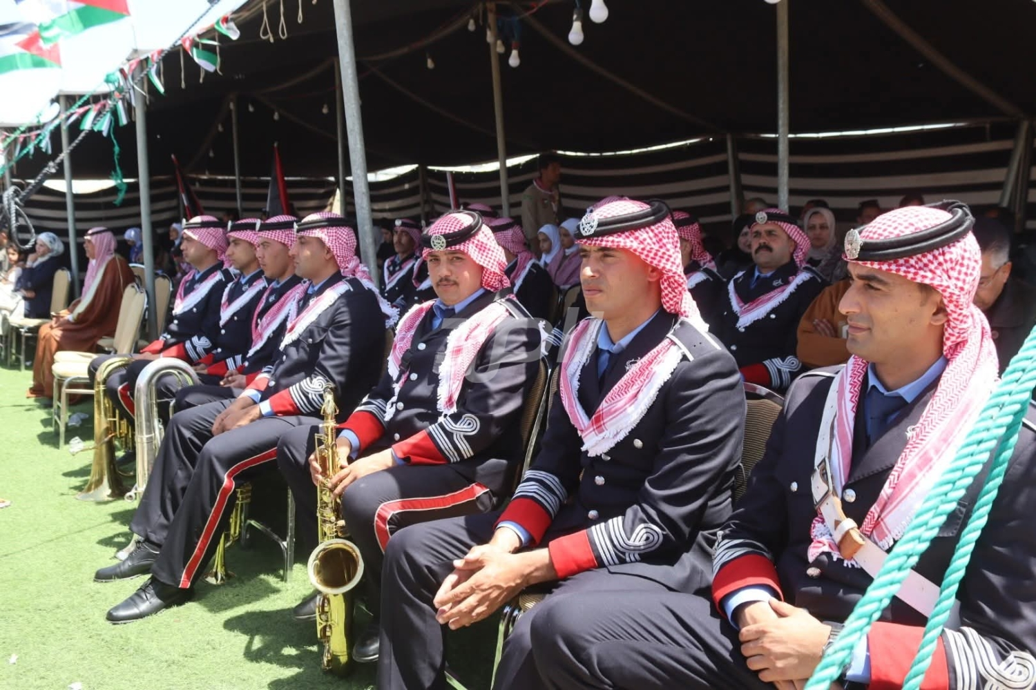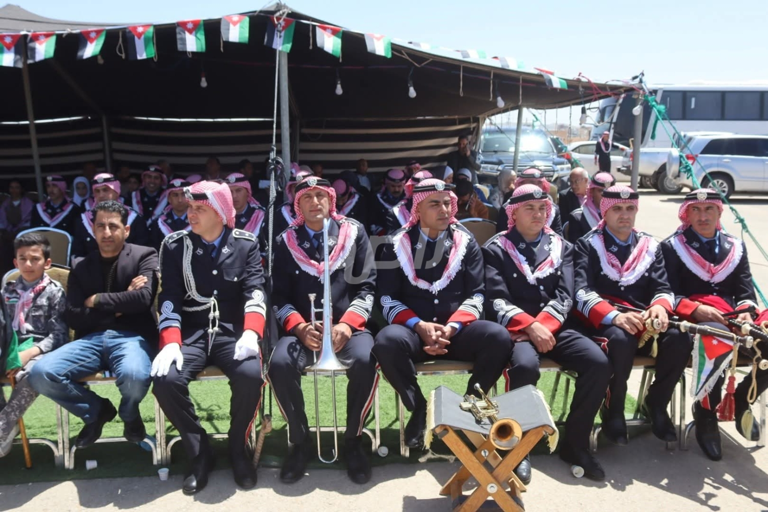 The ceremony featured performances by the Public Security Directorate’s music band, a national song by the Girl Guides choir of the Al-Muwaqqar Directorate of Education, and traditional folk dance performances by the Central Badia Troupe. Artist Saad Abu Tayeh performed several national songs, while poet Fleih Al-Jbour and poet Fayez Al-Hameidat recited national poems in Nabati and classical Arabic styles, respectively.