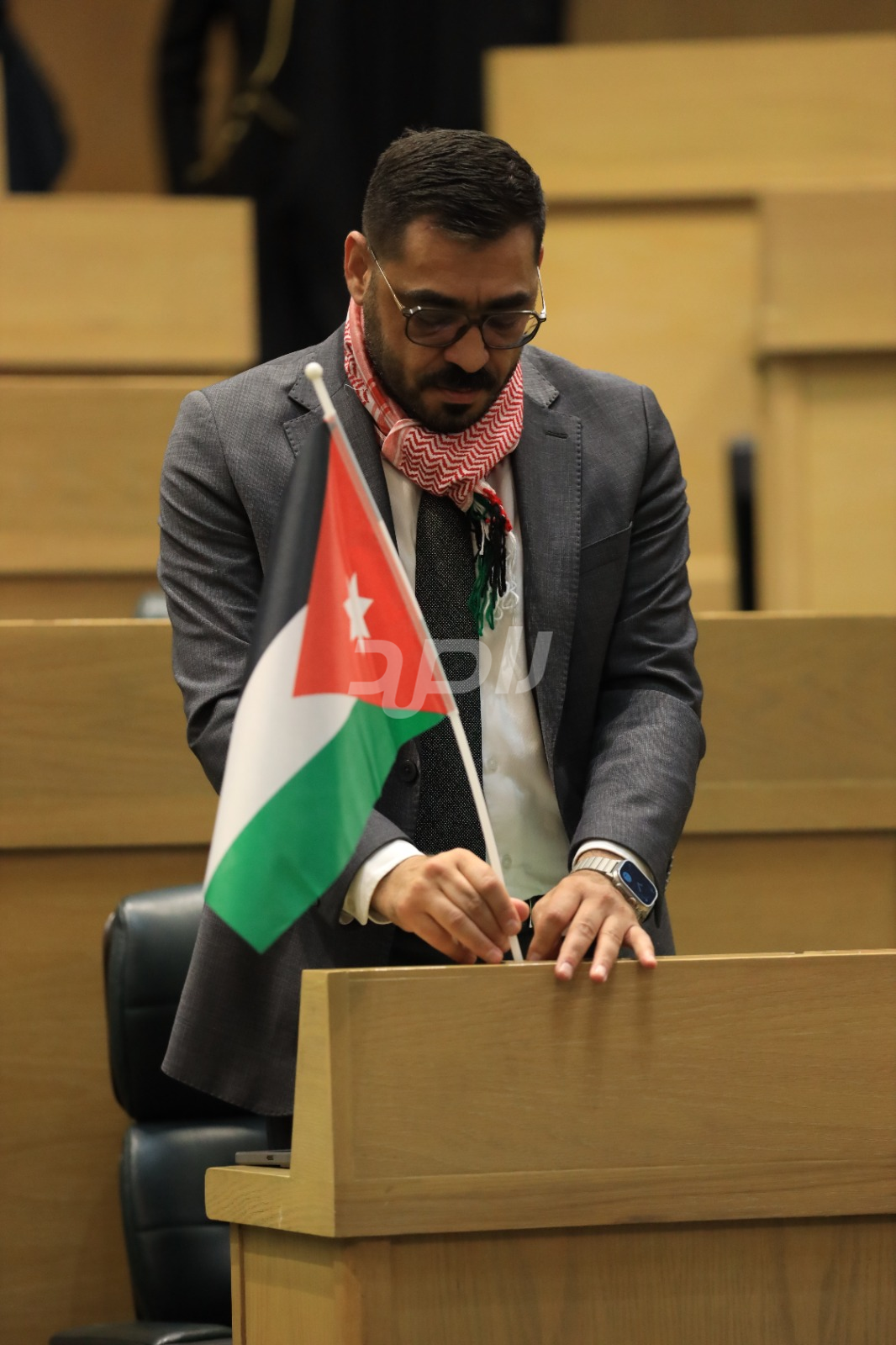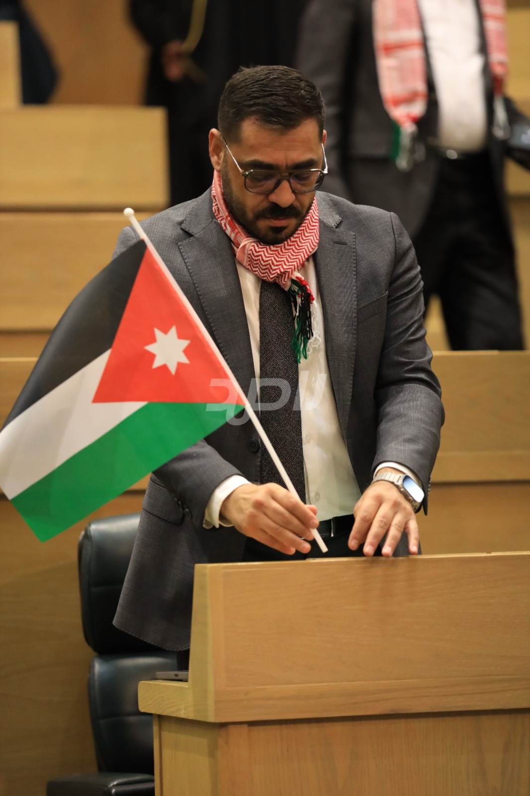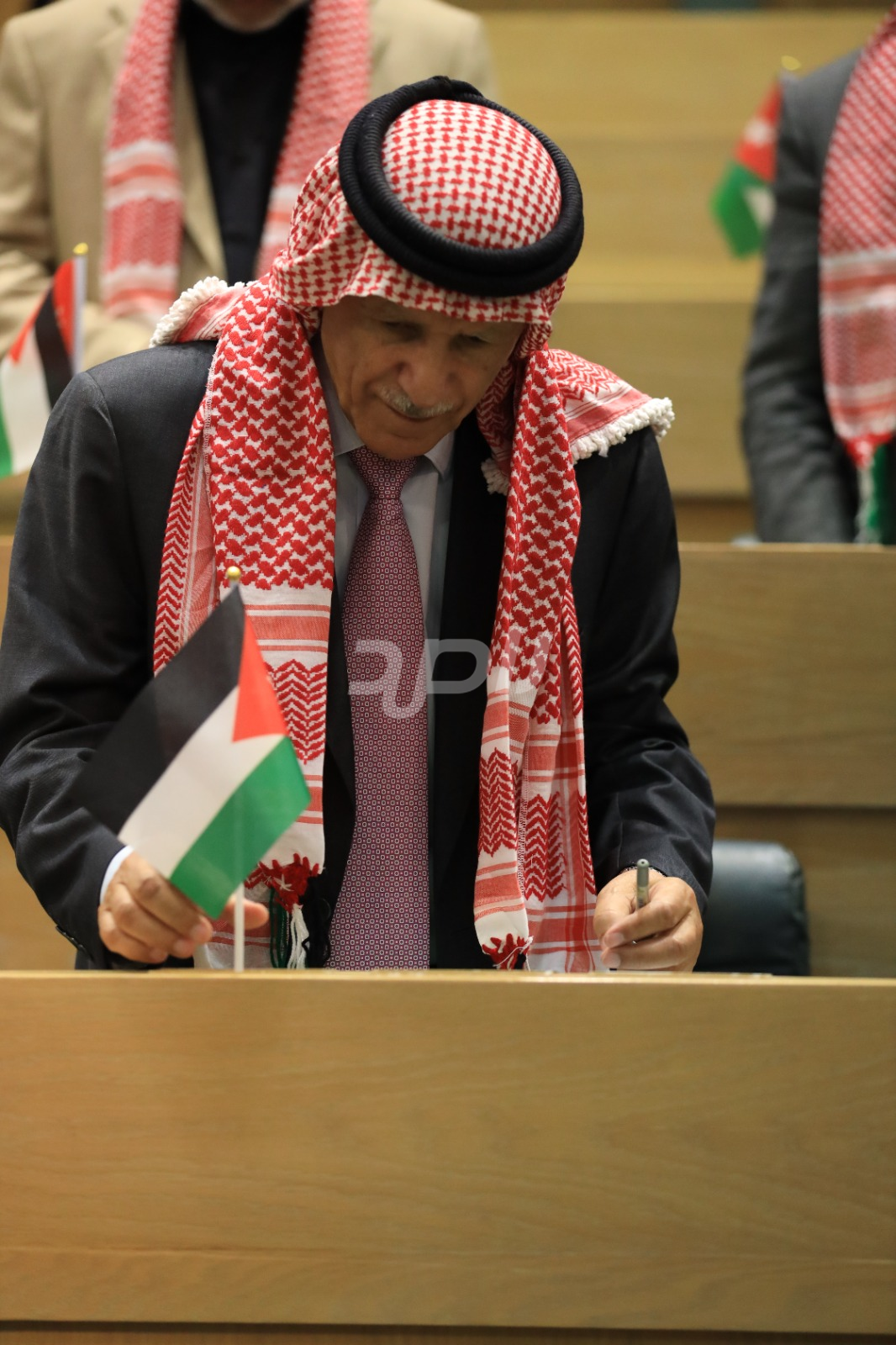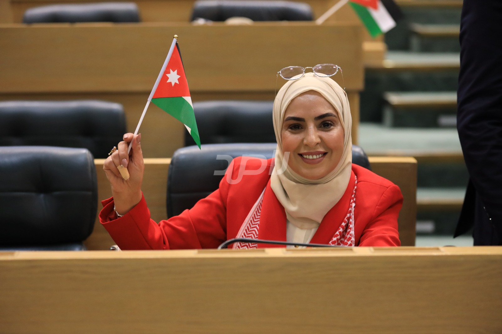 وتجلى هذا الاحتفاء من خلال ارتداء عدد من النواب الشماغ الأردني الأحمر والأبيض، الذي يُعد رمزاً تراثياً وأصالةً أردنية خالصة، بينما حمل آخرون العلم الأردني داخل قبة البرلمان، رافعين إياه عالياً في مشهد عبّر عن تلاحم النواب مع الشعب الأردني في مختلف محافظات المملكة.