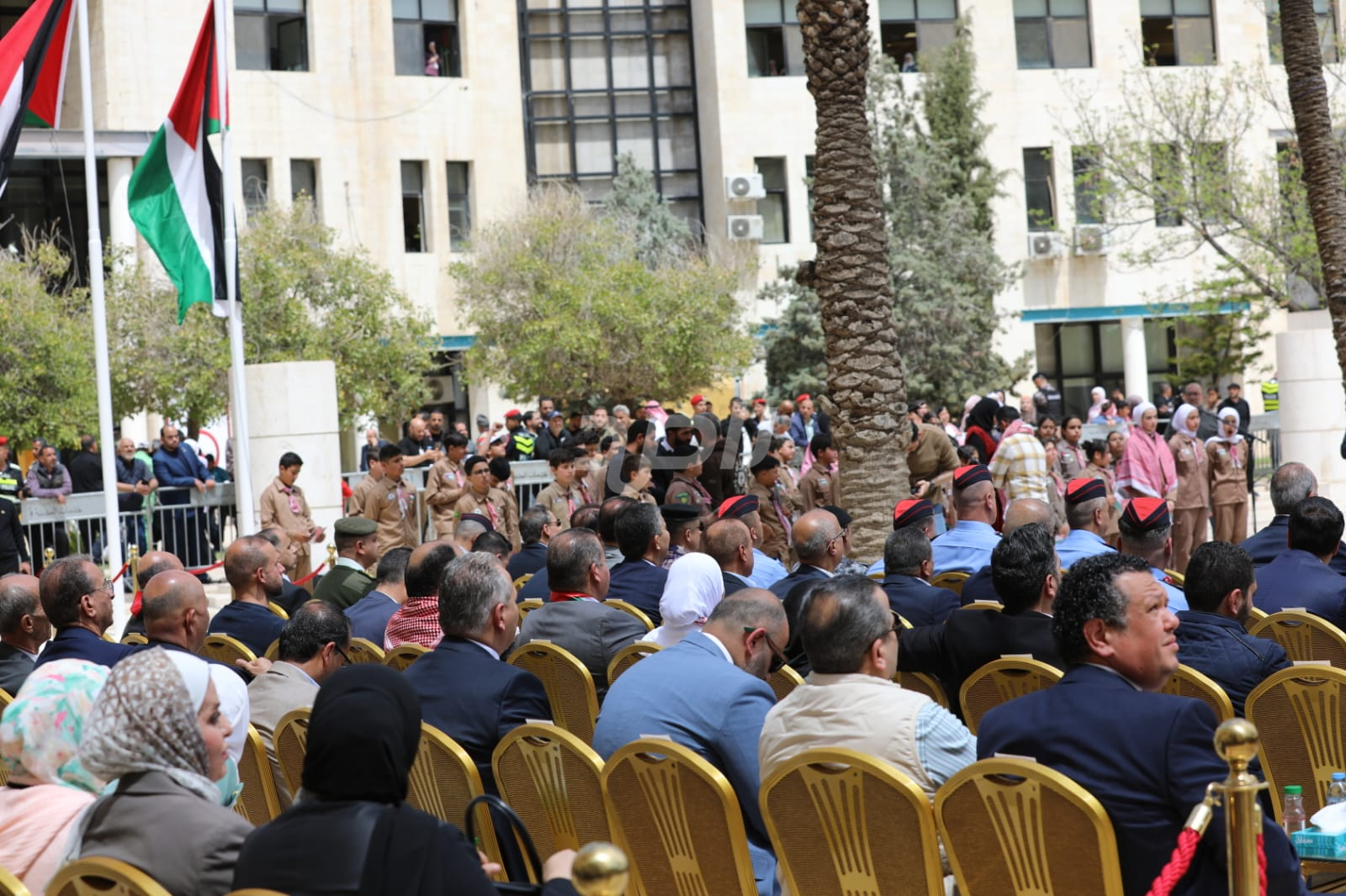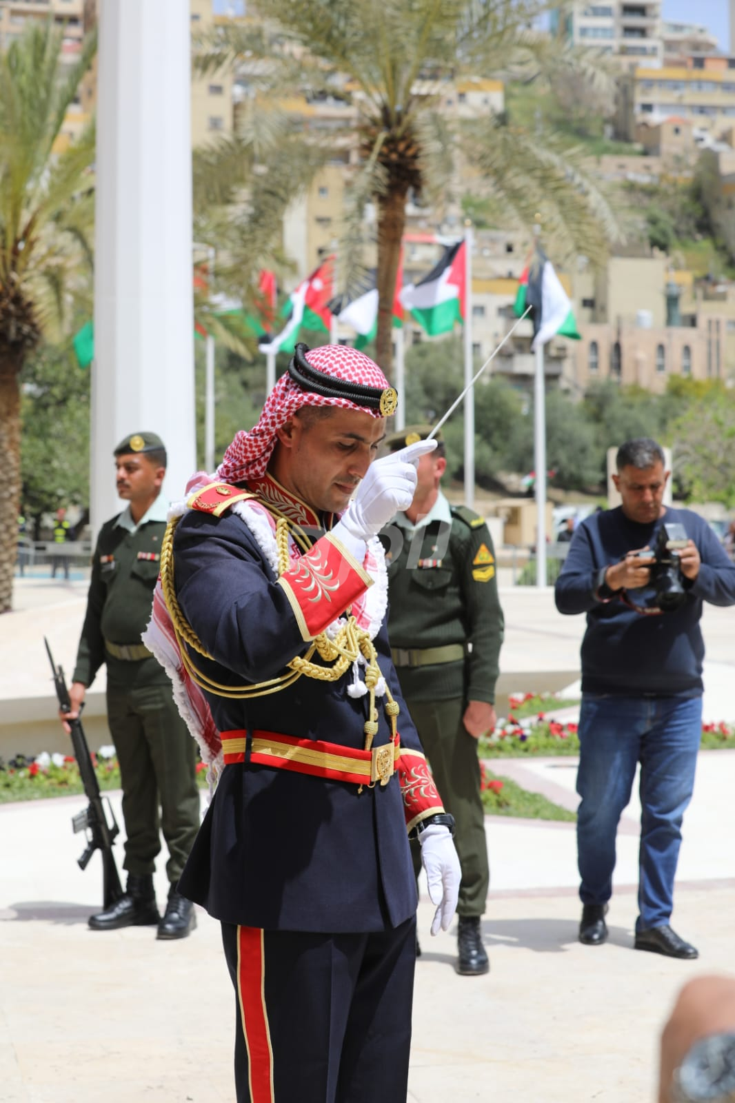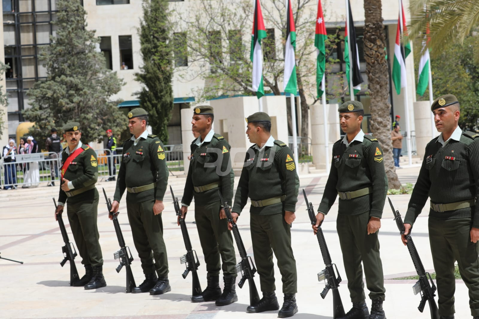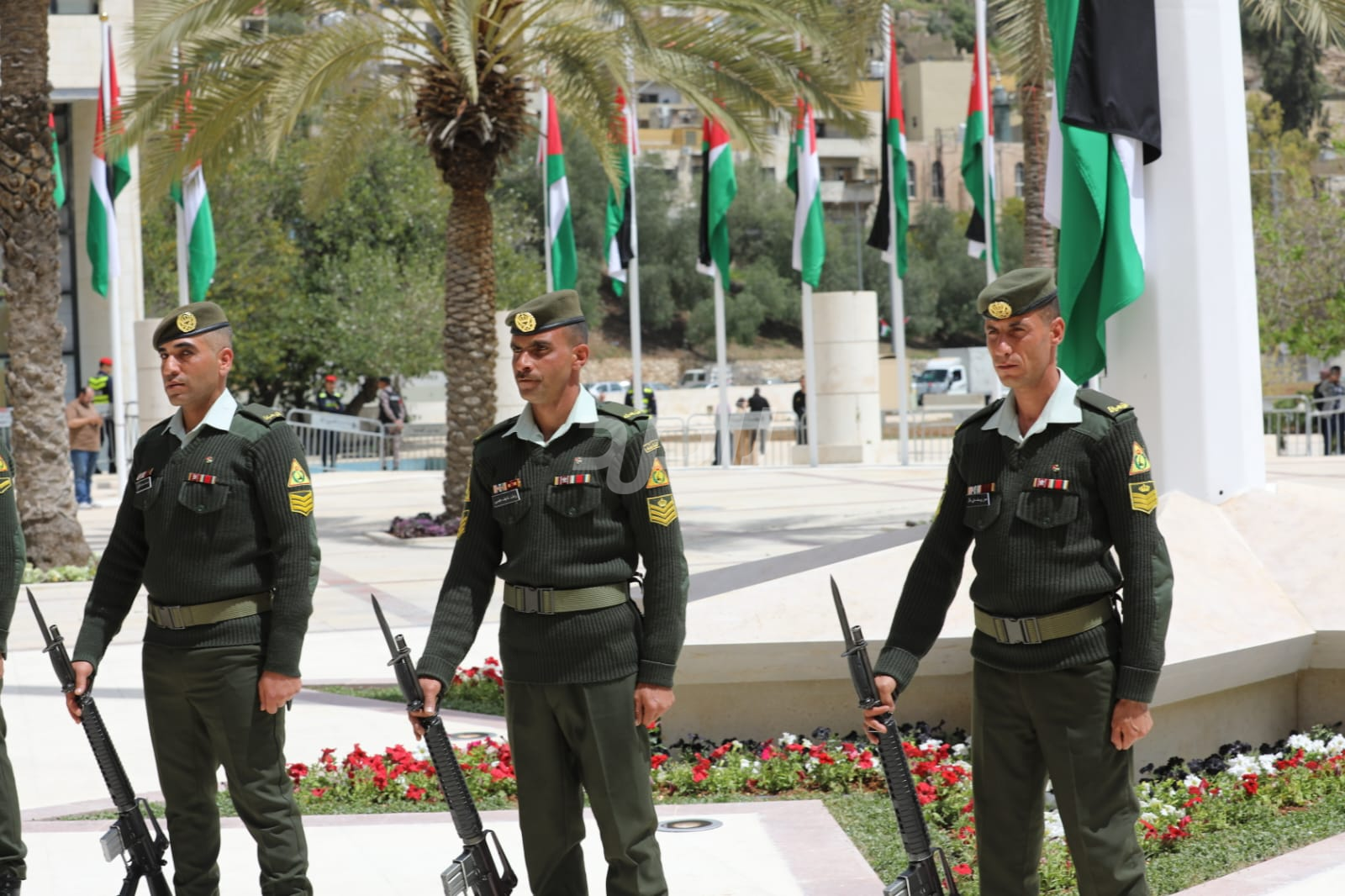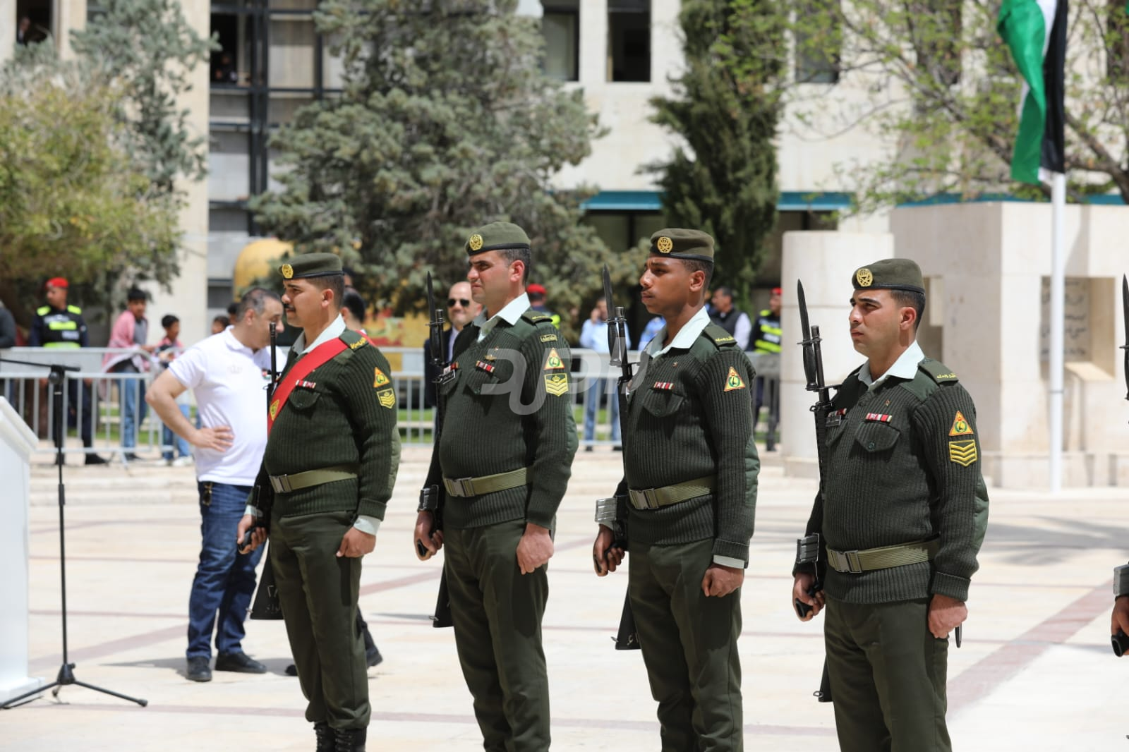 واشتمل الحفل على رفع العلم الأردني، وقدمت فرقة موسيقات القوات المسلحة والكشافة عروضاً نالت إعجاب الحاضرين.