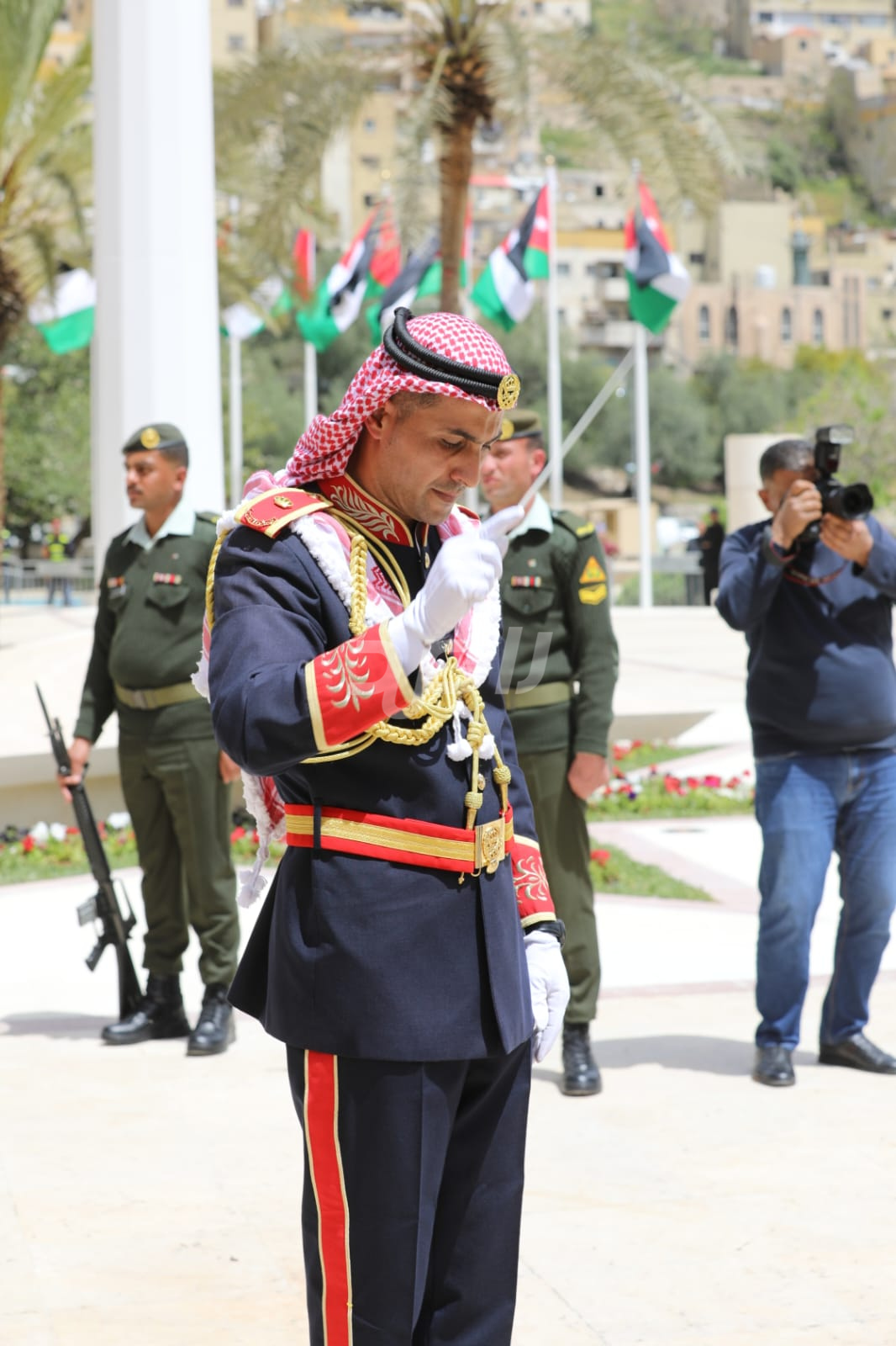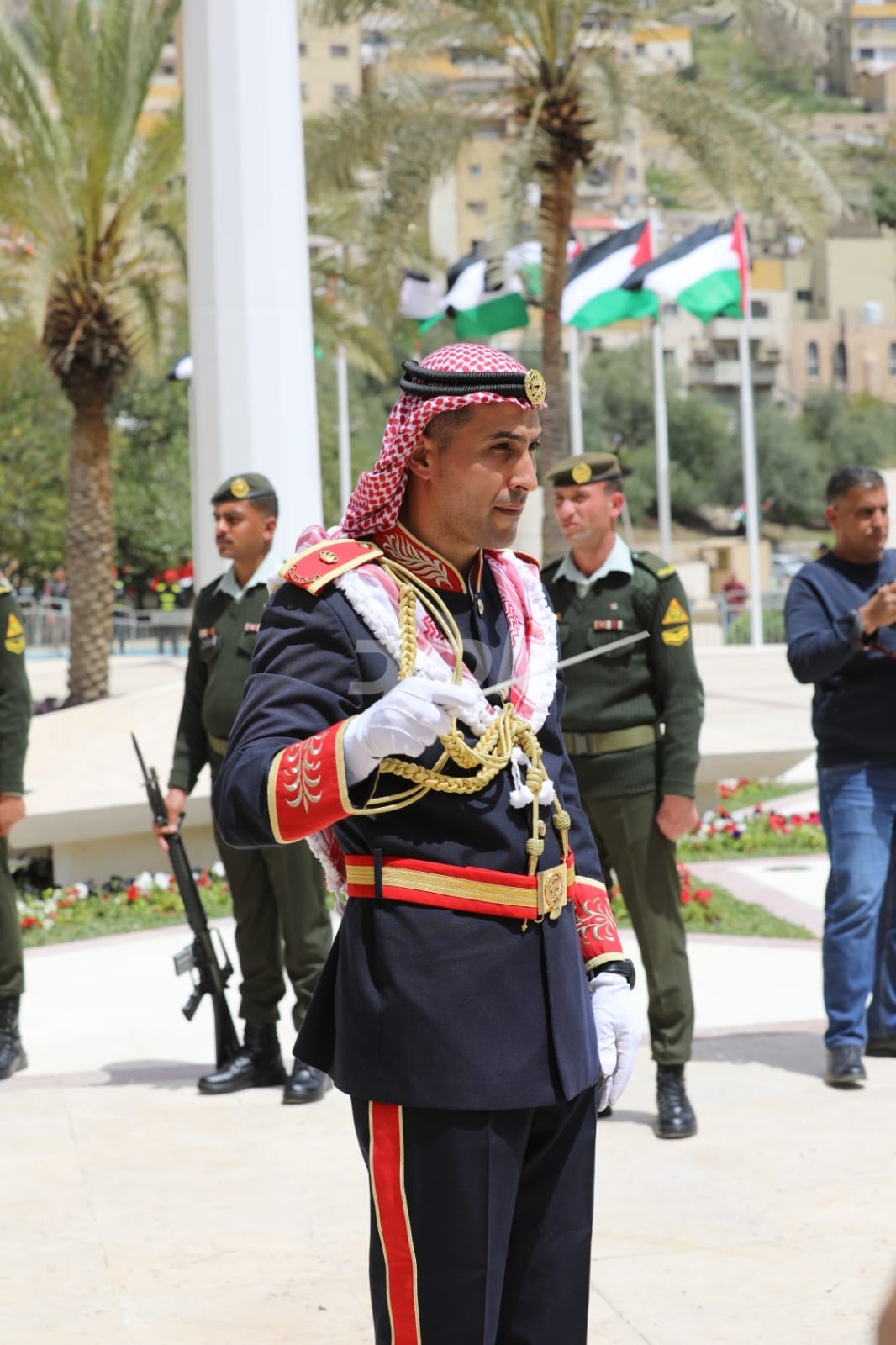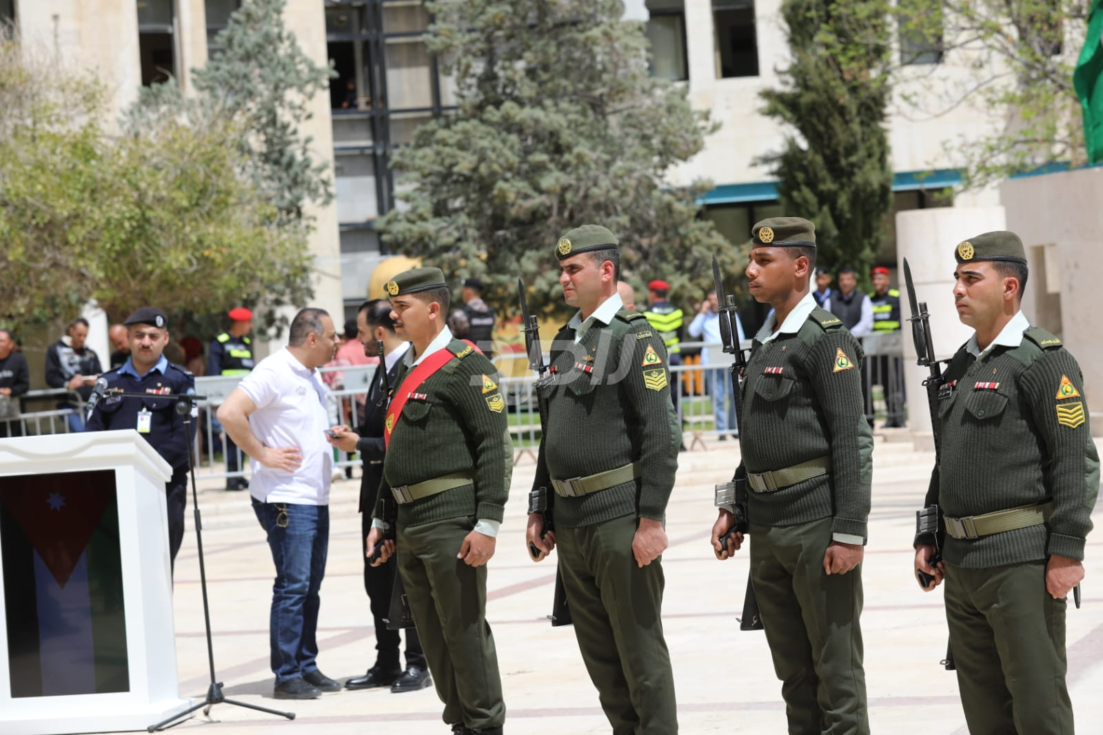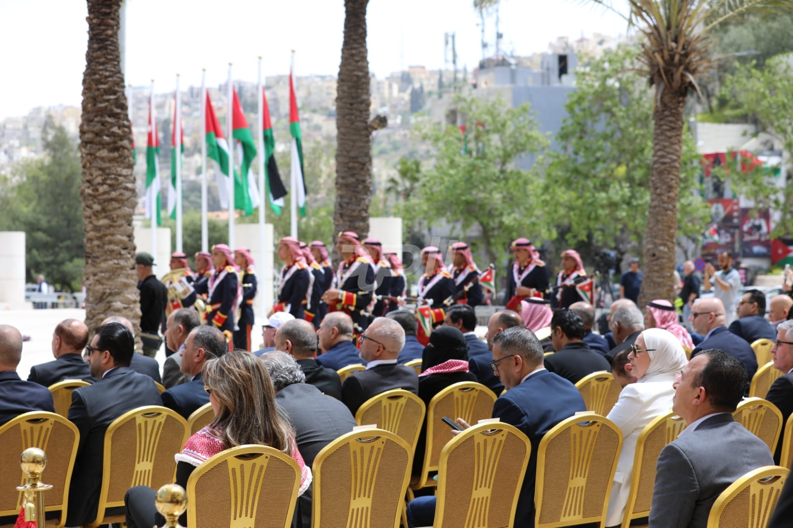 واشتمل الحفل على رفع العلم الأردني، وقدمت فرقة موسيقات القوات المسلحة والكشافة عروضاً نالت إعجاب الحاضرين.