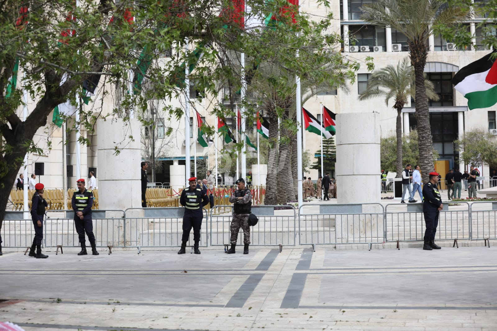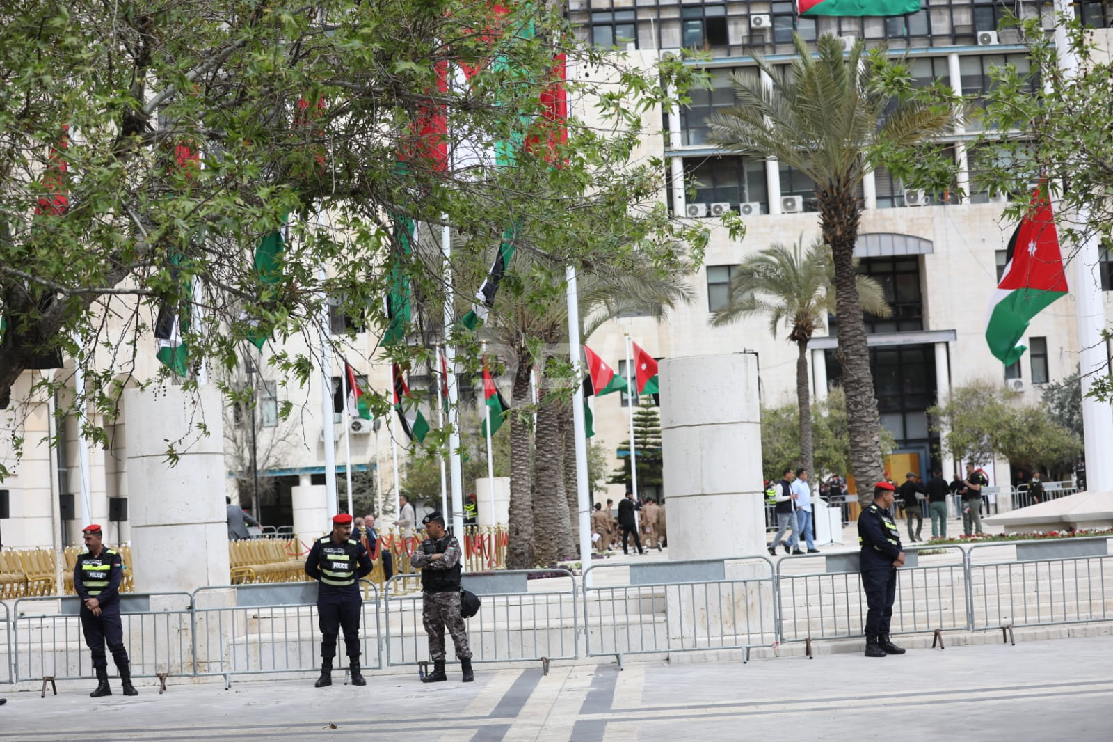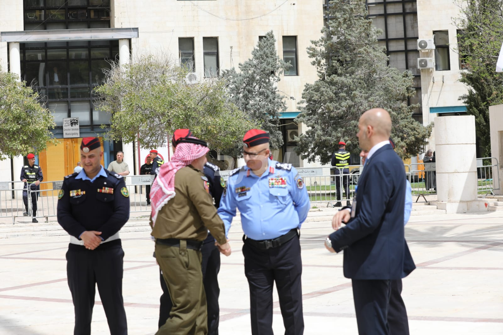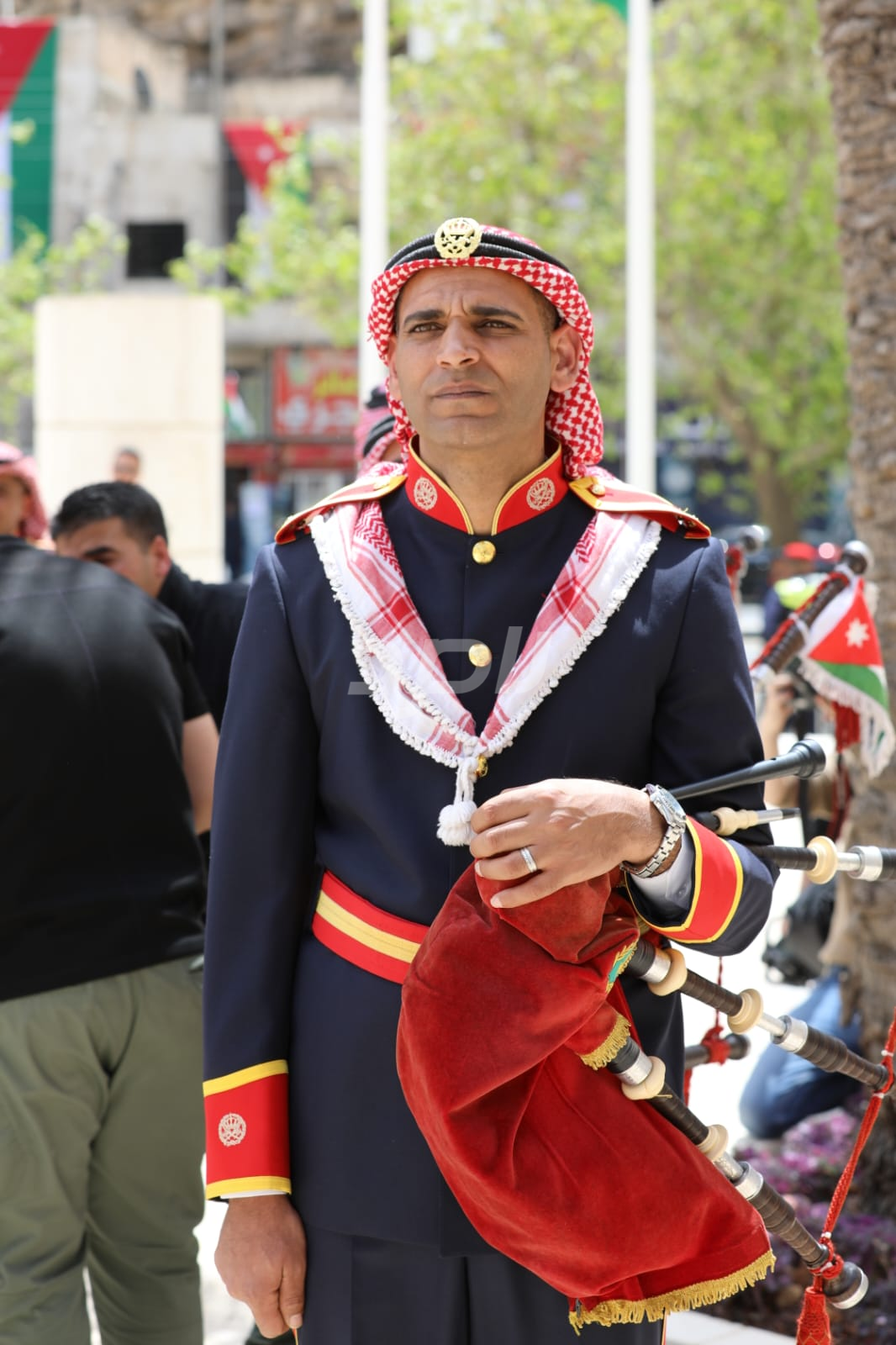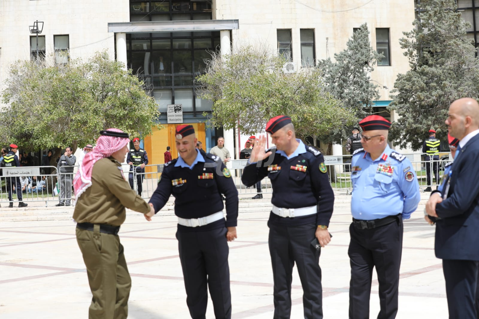 واشتمل الحفل على رفع العلم الأردني، وقدمت فرقة موسيقات القوات المسلحة والكشافة عروضاً نالت إعجاب الحاضرين.