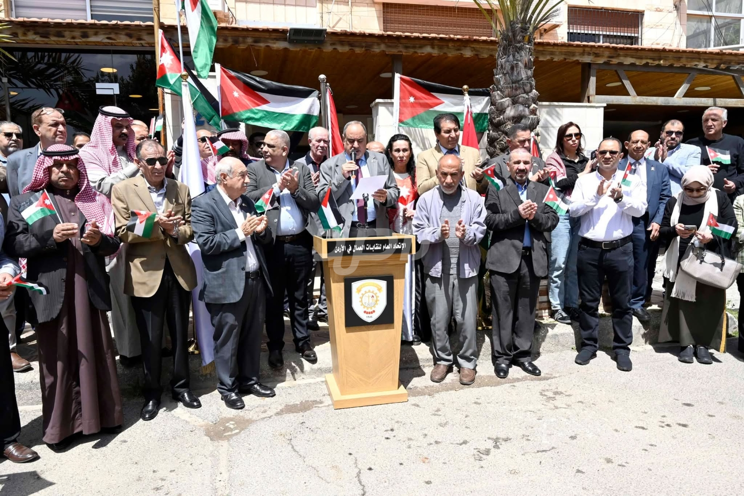واستضافت النقابة جانبا من الوقفة الوطنية التي نظمها الاتحاد العام لنقابات عمال الأردن، أمام مقره في العاصمة عمان، بمشاركة رئيس الاتحاد، ورئيس النقابة خالد الفناطسة، وأعضاء الهيئة الإدارية للنقابة، وعدد من النقابيين والنقابيات.
