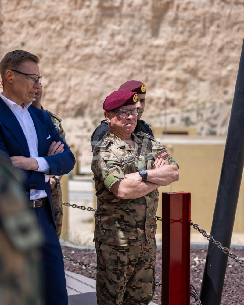 تابع جلالة الملك عبدﷲ الثاني، القائد الأعلى للقوات المسلحة، والرئيس الفنلندي الدكتور ألكسندر ستوب، اليوم الاثنين، تمرينا عسكريا تعبويا في مركز الملك عبدﷲ الثاني لتدريب العمليات الخاصة (KASOTC).
