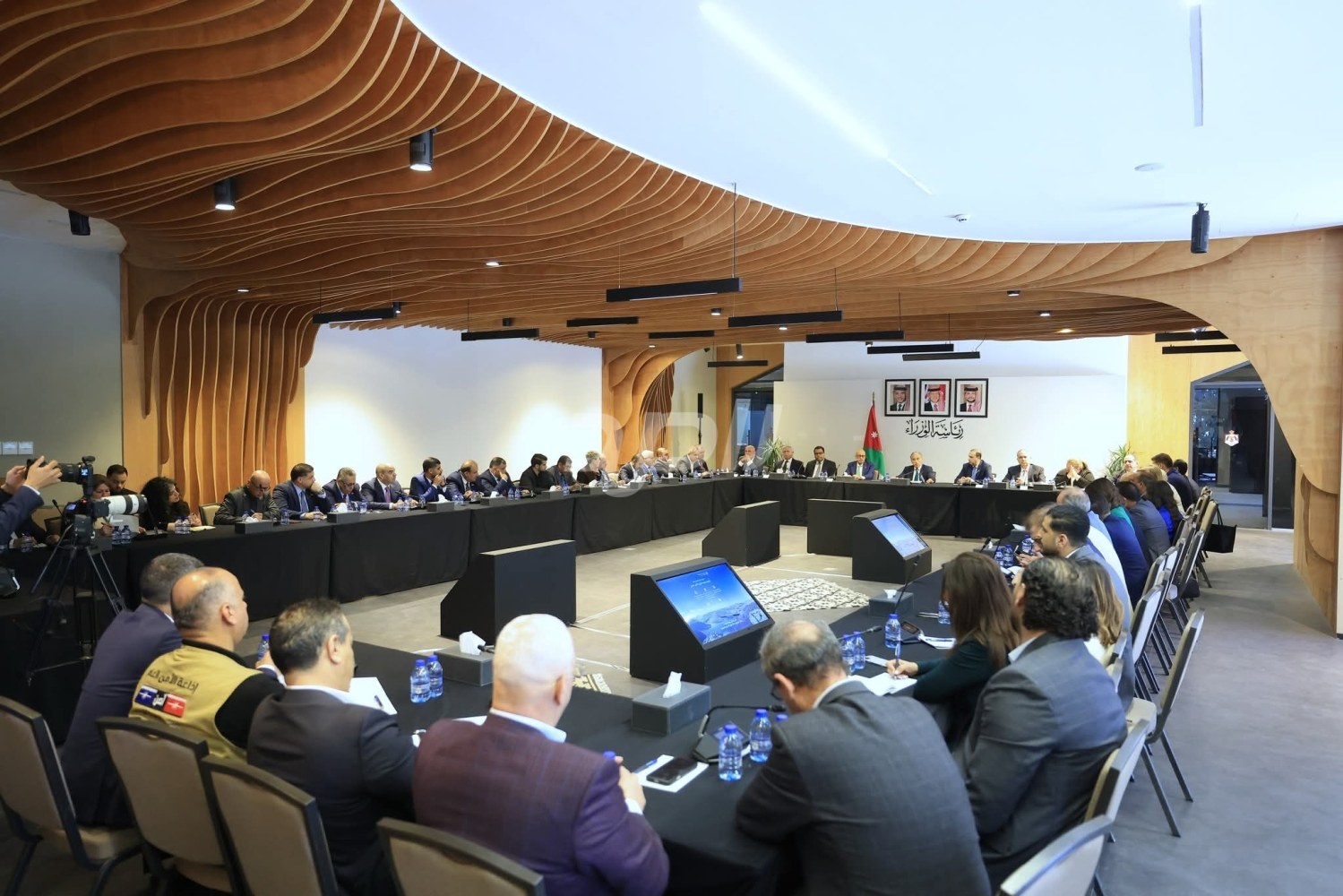 وشدد رئيس الوزراء على أن الرسالة الأهم هي أن الأردن، ورغم جميع الأزمات من حوله، ماضٍ بكل عزيمة وإصرار في تنفيذ مشاريعه الوطنية وتعزيز منعته الاقتصادية، ولن يتذرع بظروف المنطقة والأزمات عن العمل لإنجاز برامجه ومشاريعه الاستراتيجية وتحقيق المزيد من النمو والتقدم في مسارات التحديث ورؤية جلالة الملك. وأكد أن جميع المؤشرات من حيث النمو أو الصادرات أو السوق المالي تظهر منعة الاقتصاد الوطني وقدرته على تجاوز الأزمات المحيطة، لأنه يستند إلى أسس متينة وسياسات مالية ونقدية حصيفة حافظت على استقرار المؤشرات الاقتصادية الكلية، وفي مقدمتها معدلات التضخم والاحتياطيات الأجنبية، بدليل تقرير وبيان صندوق النقد الدولي ومؤسسات التصنيف الائتماني العالمية التي أكدت حصافة الإجراءات المتخذة.