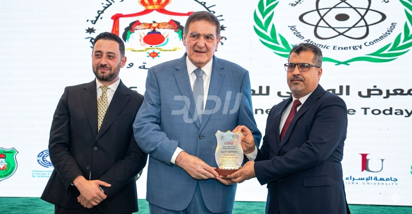 كما كرّم رئيس هيئة الطاقة الذرية الأردنية الدكتور خالد طوقان رئيس جامعة البترا الأستاذ الدكتور رامي عبد الرحيم بدرع تقديرية، تقديرًا لدعم الجامعة المتواصل ورعايتها للمعرض والمسابقة الوطنية للعلوم النووية 2026، وإيمانها بأهمية دعم البحث العلمي والابتكار، ودورها الفاعل في تمكين الطلبة والشباب وتعزيز ثقافة العلوم والتكنولوجيا النووية في الأردن.
