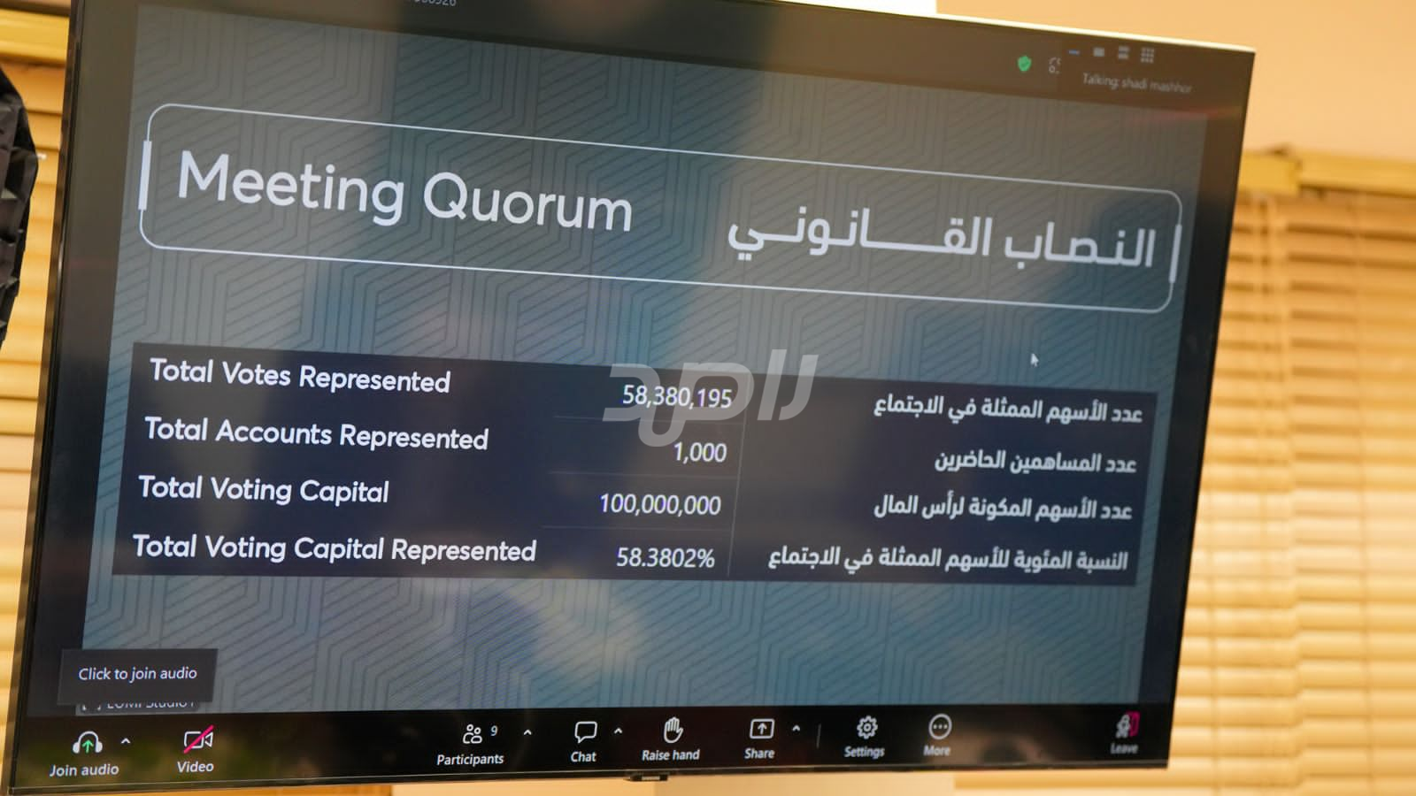 عقد مجلس إدارة شركة مصفاة البترول الأردنية، اليوم الأحد، الاجتماع العادي السبعين للهيئة العامة، وذلك عبر تقنية الاتصال المرئي والإلكتروني، بحضور رئيس مجلس الإدارة المهندس عبد الرحيم البقاعي، وأعضاء مجلس الإدارة، والرئيس التنفيذي المهندس حسن الحياري، ومندوب مراقب عام الشركات السيد هاشم الهرش.