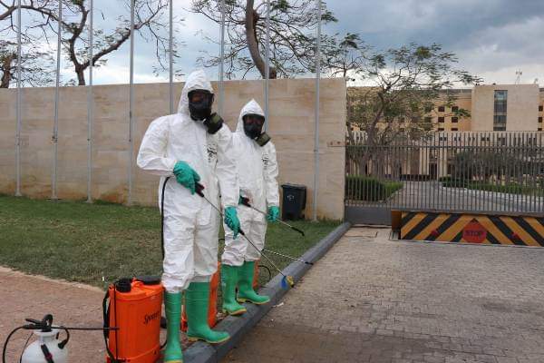 كما أجرى فريق مختص تابع لمجموعة الاسناد الكيماوي عمليات تعقيم لكافة مرافق فندق الكمبنسكي في منطقة البحر الميت، وذلك قبل دخول المواطنيين القادمين من خارج المملكة، الذين تقرر وضعهم في الحجر الصحي داخل الفندق، ويجري فريق مختص عملية تعقيم لجميع الآليات الخارجة من الفندق، وذلك لضمان عدم انتشار الفيروس في حال وجوده. ويأتي ذلك ضمن الاجراءات الوقائية لاحتواء انتشار فيروس كورونا.