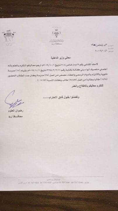 محافظ العقبة يوجه كتاباً للاستعداد والتوجية والتنبية