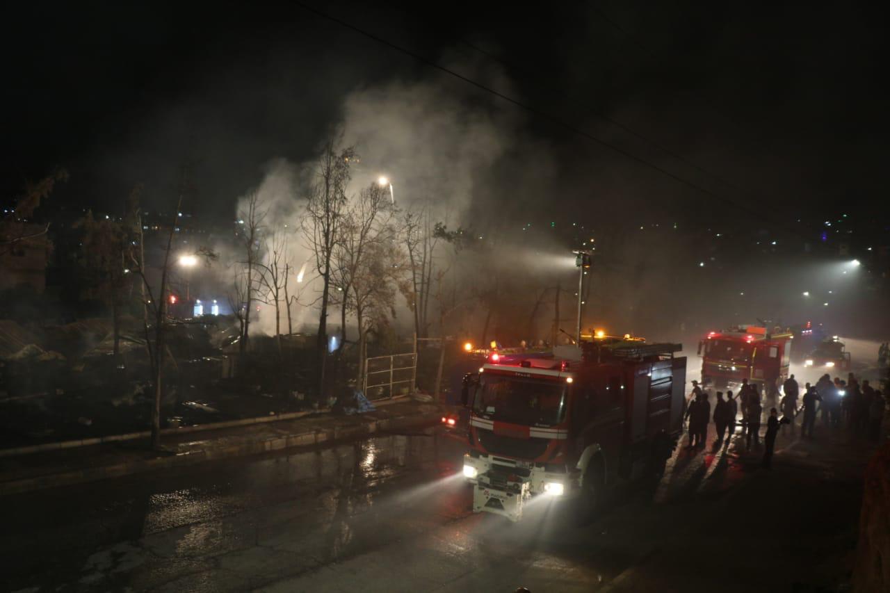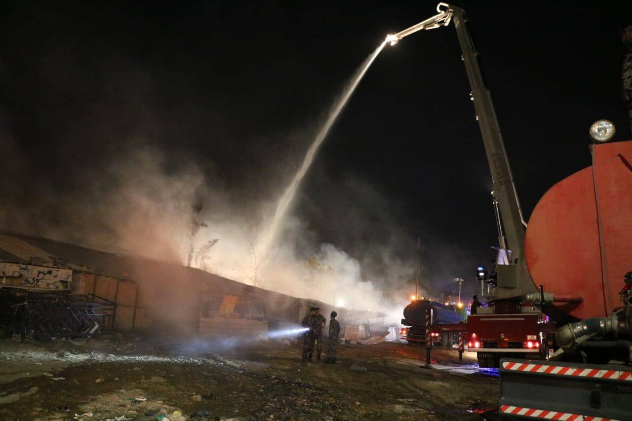 اخماد حريق في السوق الشعبي ومشتل في منطقة النصر