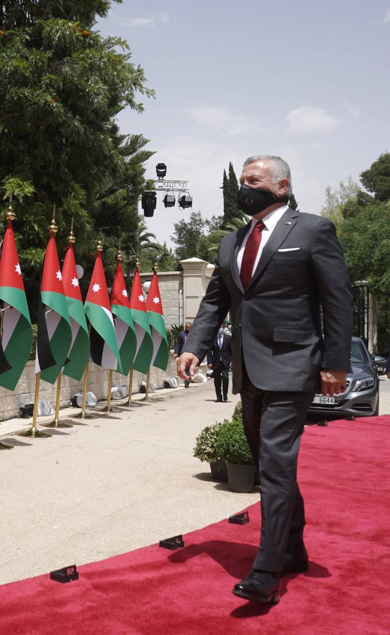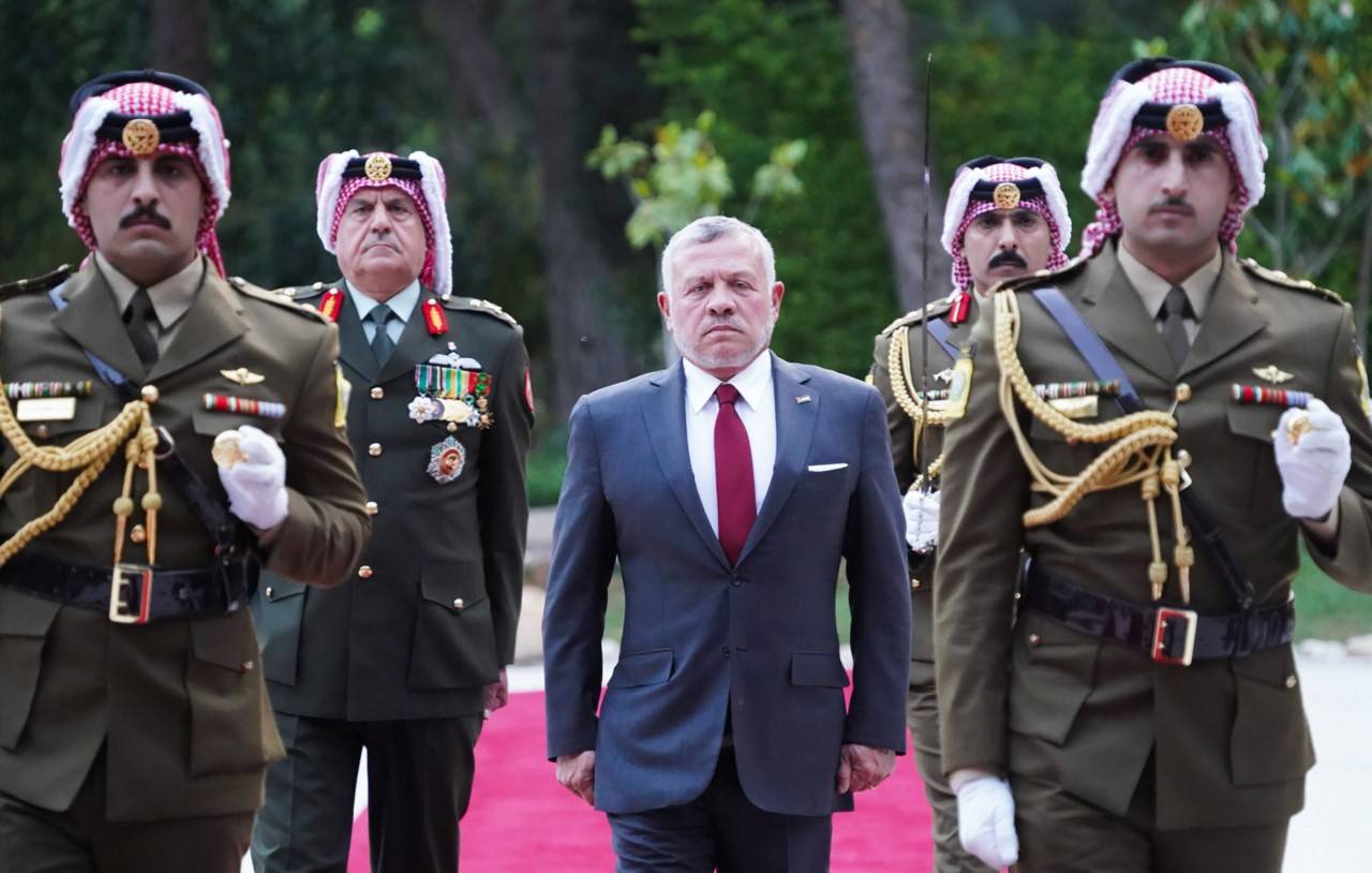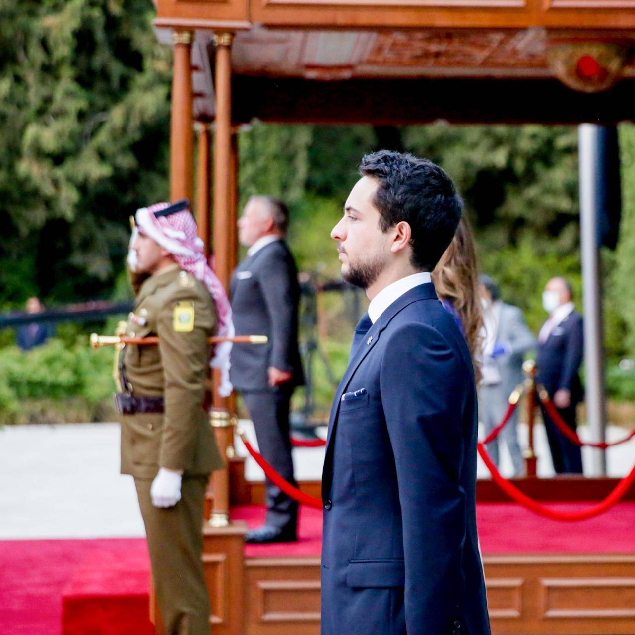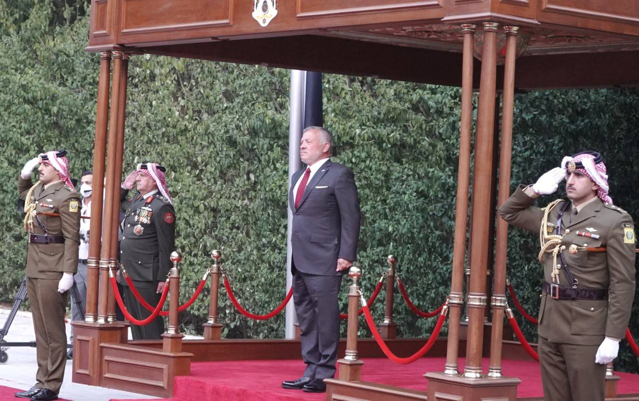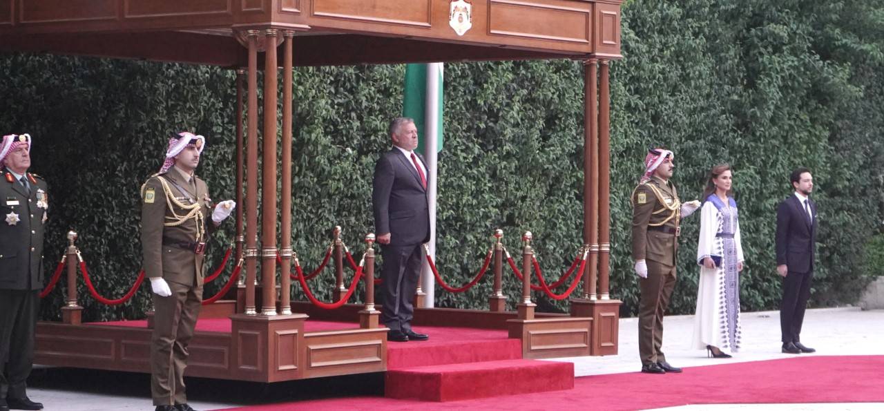 وكان في استقبال جلالته ترافقه جلالة الملكة رانيا العبدالله لدى وصوله الديوان الملكي الهاشمي، سمو الأمير الحسين بن عبدالله الثاني، ولي العهد، ورئيس الديوان الملكي الهاشمي، ورئيس هيئة الأركان المشتركة.