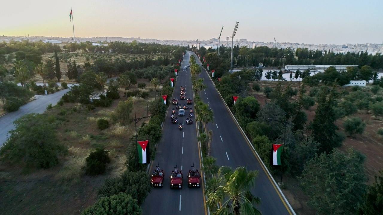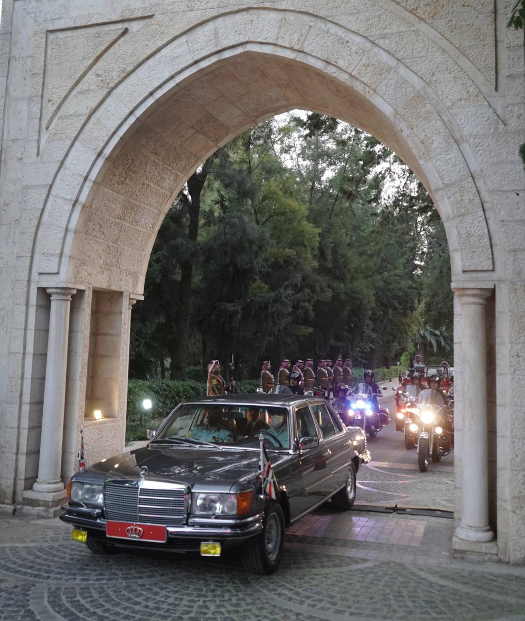 وجرت لجلالة الملك لدى وصوله بالموكب الأحمر، مراسم رسمية، حيث أطلقت المدفعية إحدى وعشرين طلقة تحية لجلالته، وحيته ثلة من حرس الشرف، وعزفت الموسيقى السلام الملكي الأردني.
