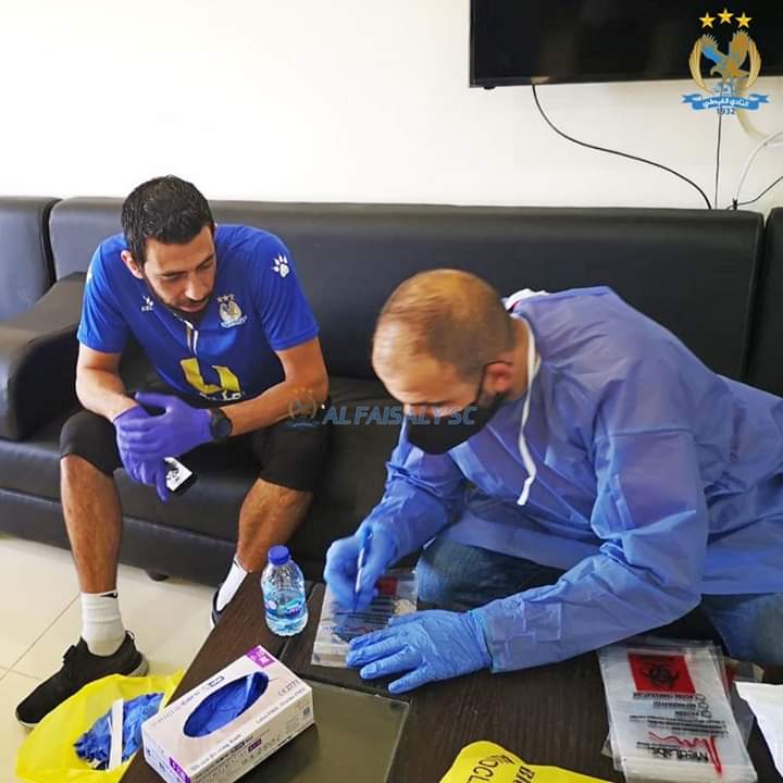 اجرى النادي الفيصلي المسحة المخبرية "كوفيد 19 " لجميع الاجهزة الفنية و الطبية و الادارية و جميع الاعبين بالفريق الاول للنادي .