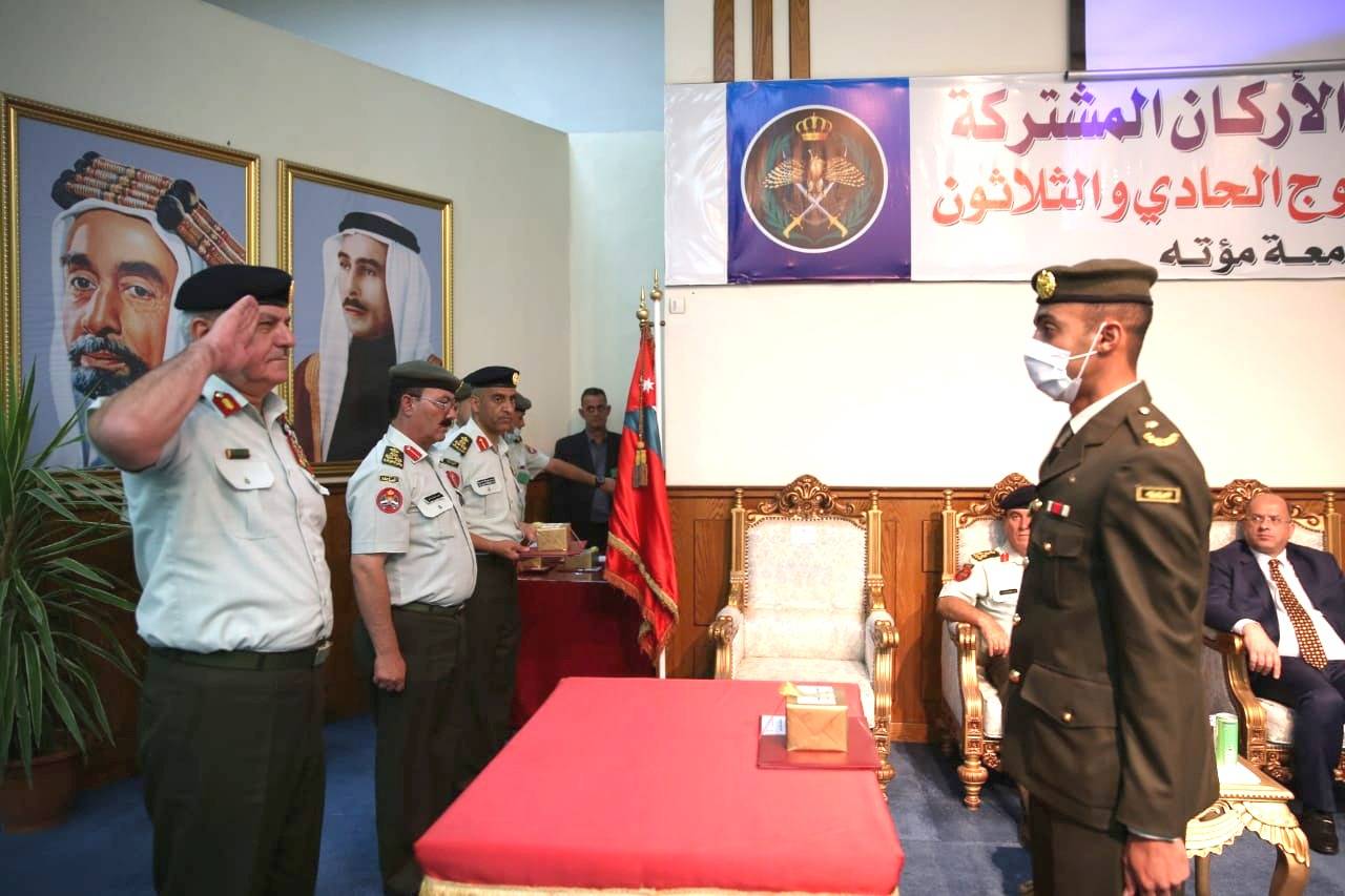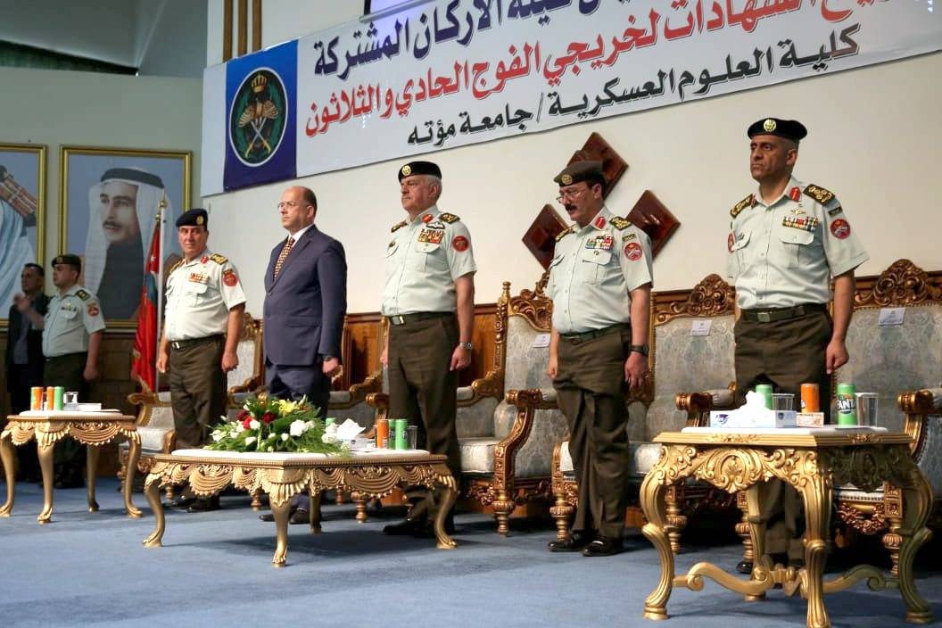 مندوباً عن جلالة الملك عبدالله الثاني، القائد الأعلى للقوات المسلحة، رعى رئيس هيئة الأركان المشتركة اللواء الركحن يوسف أحمد الحنيطي، اليوم الإثنين، حفل تخريج الفوج الحادي والثلاثين من تلاميذ جامعة مؤتة الجناح العسكري وكان في استقباله رئيس جامعة مؤتة ونائب رئيس الجامعة للشؤون العسكرية.