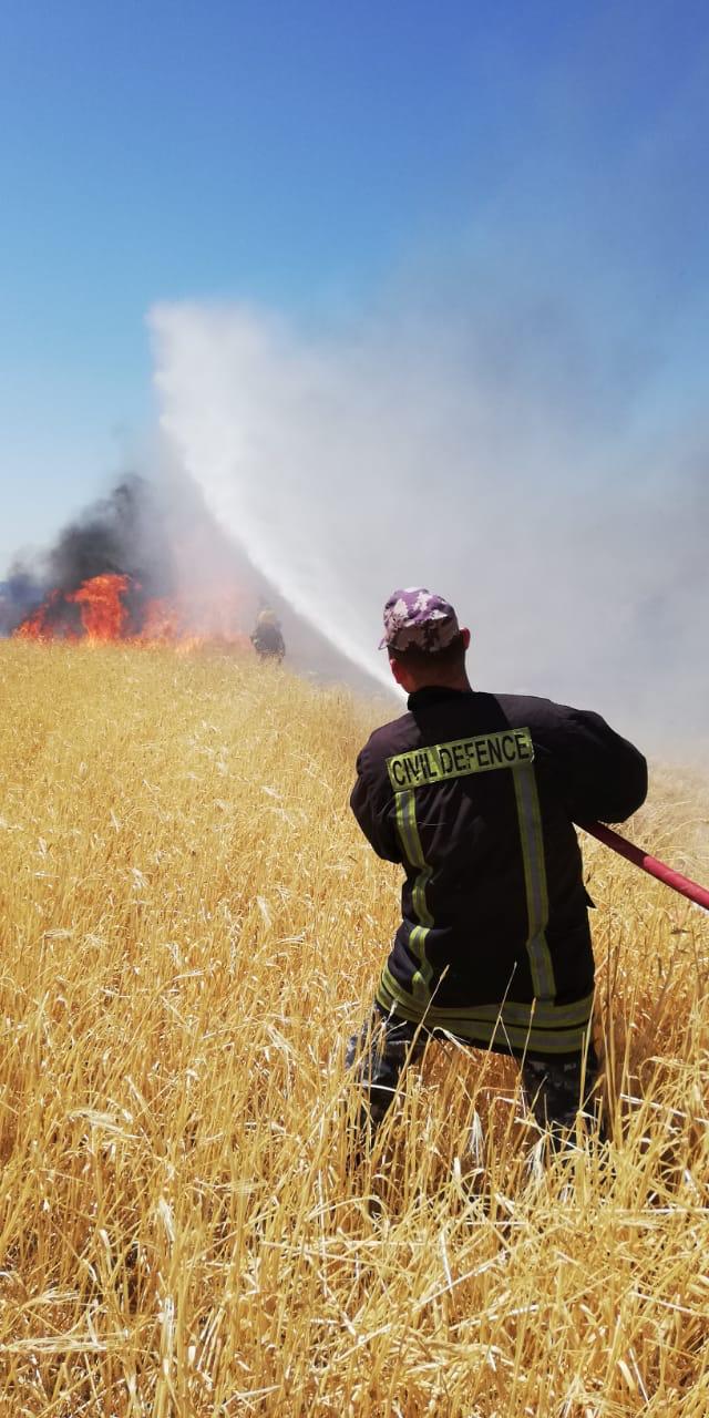كما تمكنت كوادر الإطفاء في مديرية دفاع مدني غرب اربد من إخماد حريقًا آخر شبَّ بأعشاب جافة وأشجار مثمرة في منطقة دير السعنه.