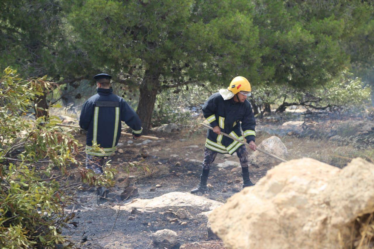 أخمدت كوادر الإطفاء في مديرية دفاع مدني البلقاء حريقاً أتى على مساحات واسعة من الأعشاب الجافة والأشجار الحرجية والأشجار المثمرة في منطقة عين الباشا.