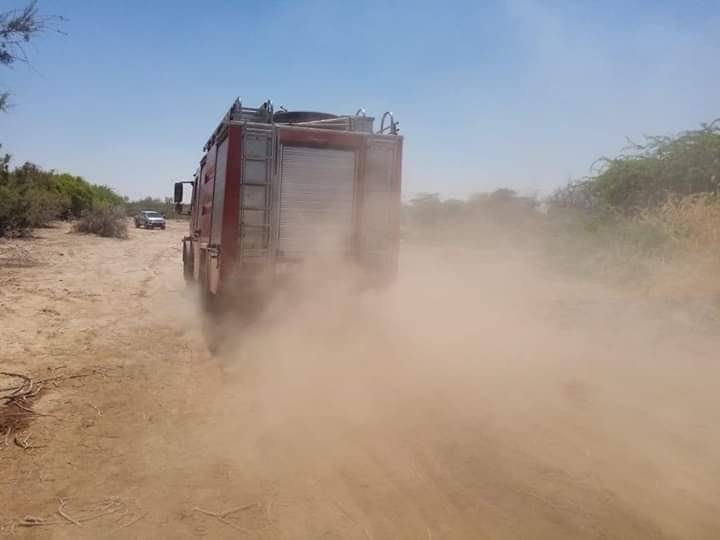 إخماد حريق أعشاب جافة ومحاصيل زراعية وأشجار مثمرة