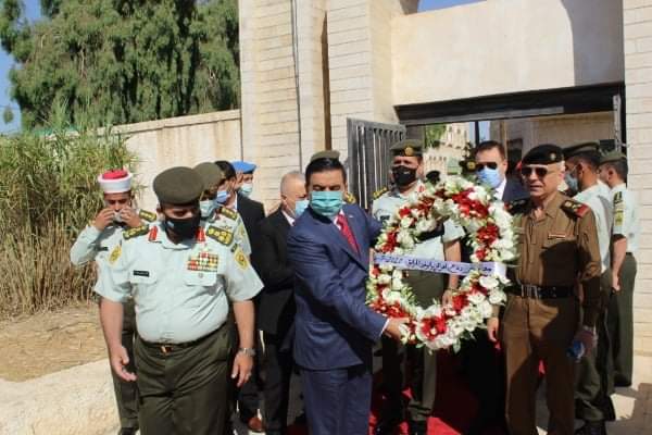 وقرأ الحضور الفاتحة على أرواح الشهداء ووضع وزير الدفاع العراقي وقائد المنطقة العسكرية الشرقية مندوباً عن رئيس هيئة الأركان المشتركة أكاليل الورود على النصب التذكاري للشهداء في مقبرة شهداء الجيش العراقي في مدينة المفرق.