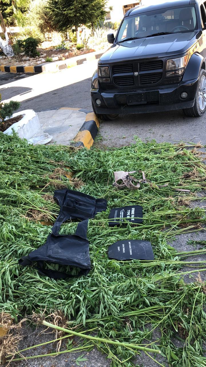 •مداهمة شخص مصنف بالخطير جداً والمسلح غرب البلقاء بعد ورود معلومات حول زراعته وشخص اخر لمادة الماريجوانا المخدرة ، والقاء القبض عليه وبحوزته سلاح ناري ومركبة تحمل لوحة ارقام مزورة ، وكميات من مادة الماريجوانا المخدرة.