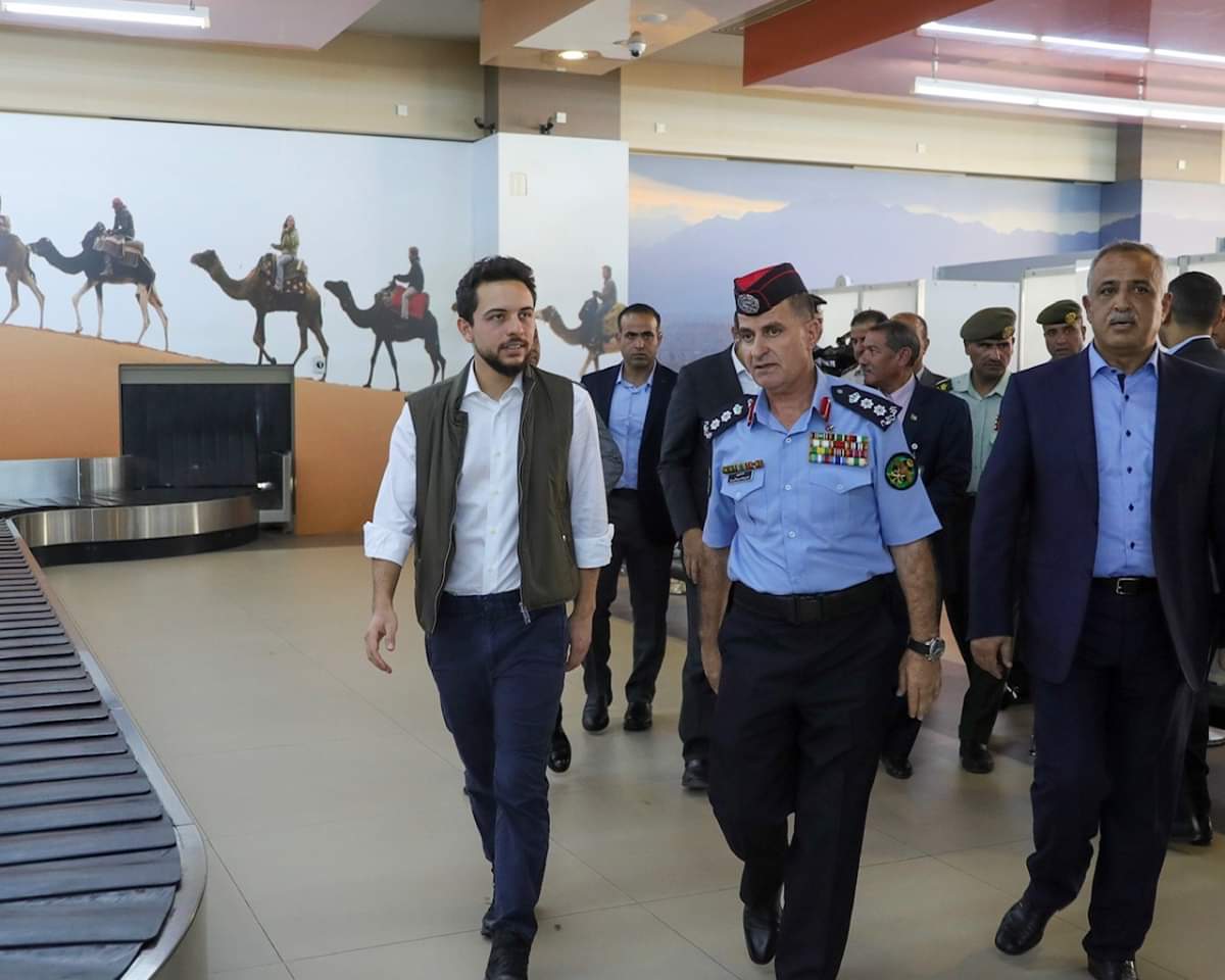 قم ولي العهد سمو الأمير الحسين بن عبدالله الثاني، بتفقد جاهزية مطار الملك الحسين الدولي بالعقبة حيث اكد أهمية استدامة جاهزية البنى التحتية في المطار وتسهيل الإجراءات أمام المسافرين بما ينعكس على إبراز الصورة المشرقة للأردن.