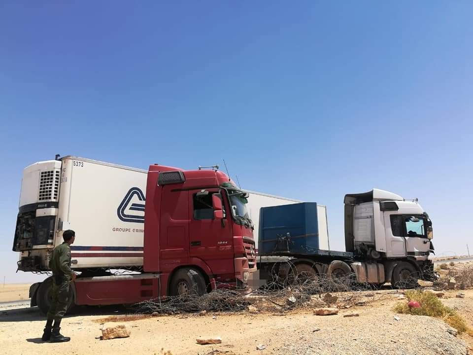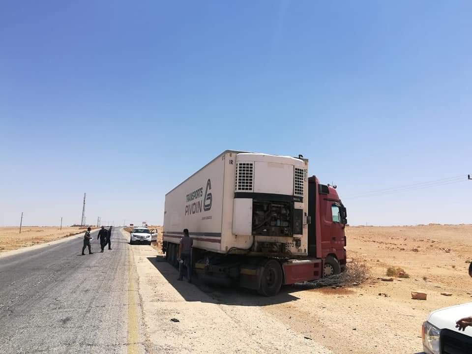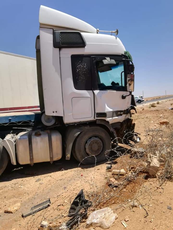 أصيب شخصان اليوم بجروح ورضوض في مختلف أنحاء الجسم إثر حادث تدهور بين تريلات مابعد محطة الكرامة بحوالي ٢٠كم باتجاه الحدود.