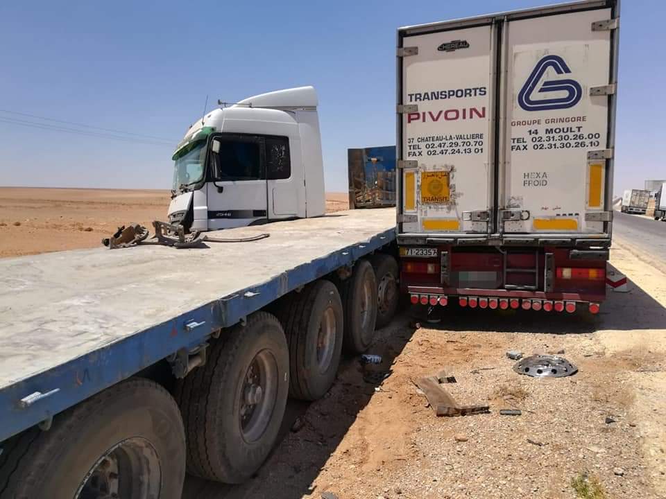 إصابتان اثر حادث تصادم بين شاحنتين بالرويشد