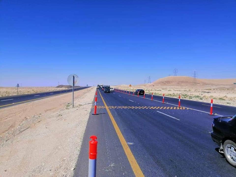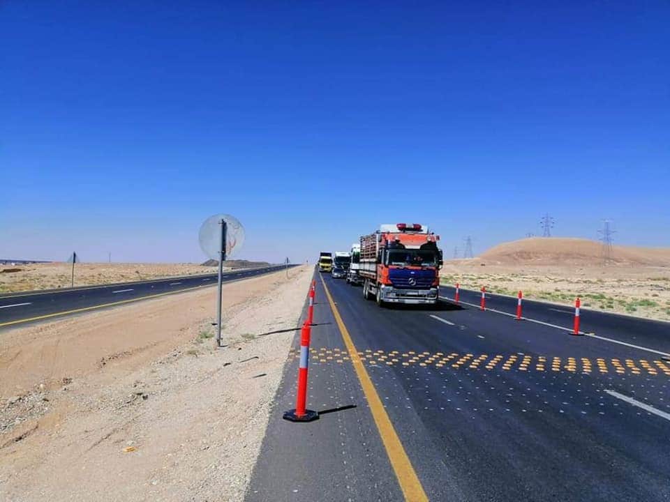 حيث أنه تم أغلاق منطقة عمل جديدة وتجهيز تحويلة مرورية من الطريق ضمن أعمال أعاده إنشاء الطريق الصحراوي في منطقة جرف الدراويش بين المحطات تحويلة DR02 118+600 - 127+760 المنطقة مجهزه بكافه عناصر السلامه المروريه من إشارات تحذيرية وإرشادية ولوحات وأسهم مضيئة وأعمده عاكسه وجميع المتطلبات الأخرى