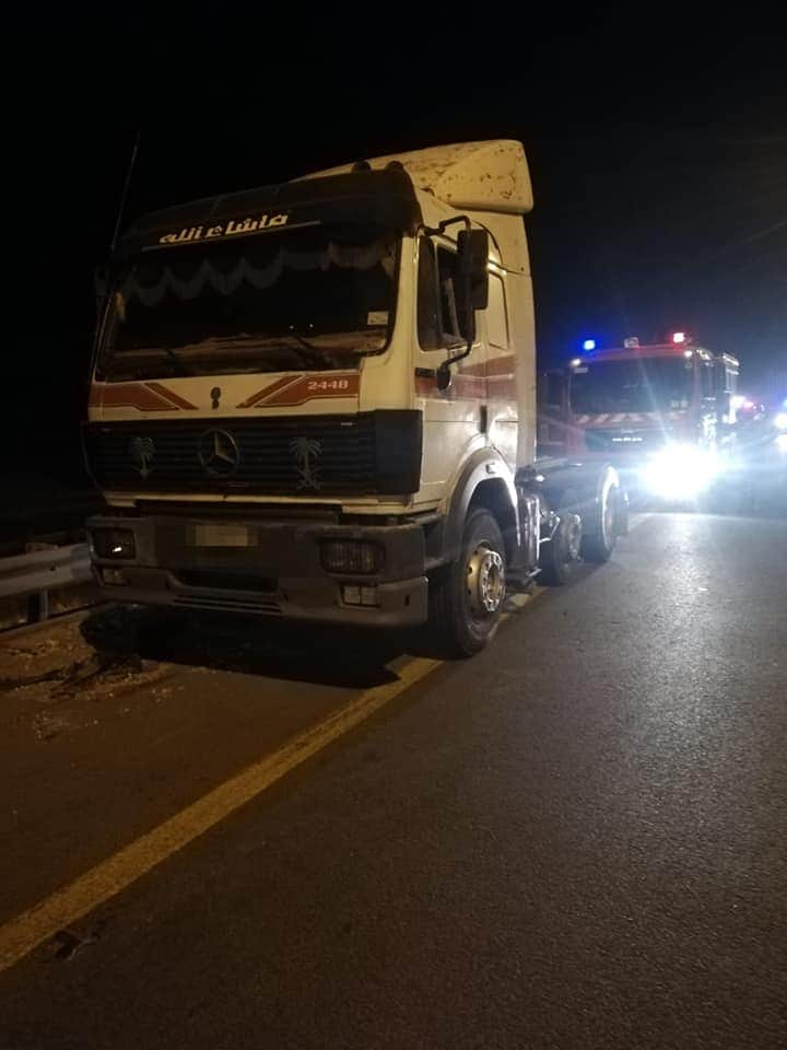 أصيب شخصان بإصابات بالغة في مختلف أنحاء الجسم إثر حادث تصادم بين مركبة خصوصي وتريلا ، وقع مساء اليوم، ما بعد جسر الماضونة على شارع 100 بإتجاه الزرقاء.