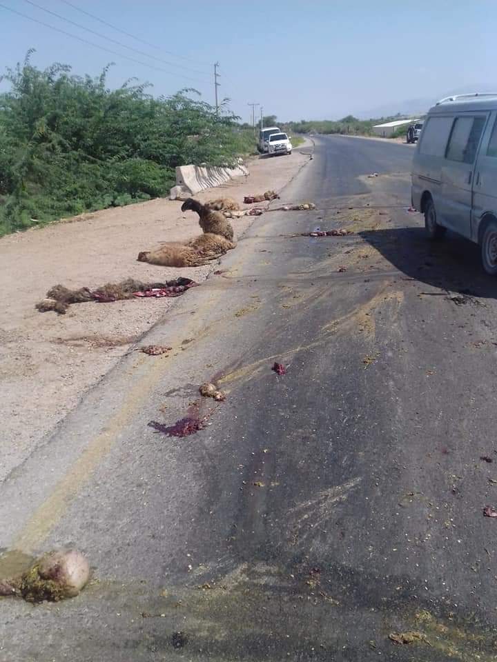 نفوق 16 رأس من الاغنام إثر حادث دهساً