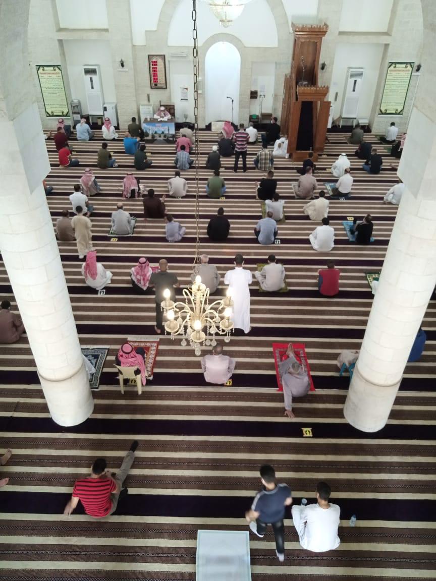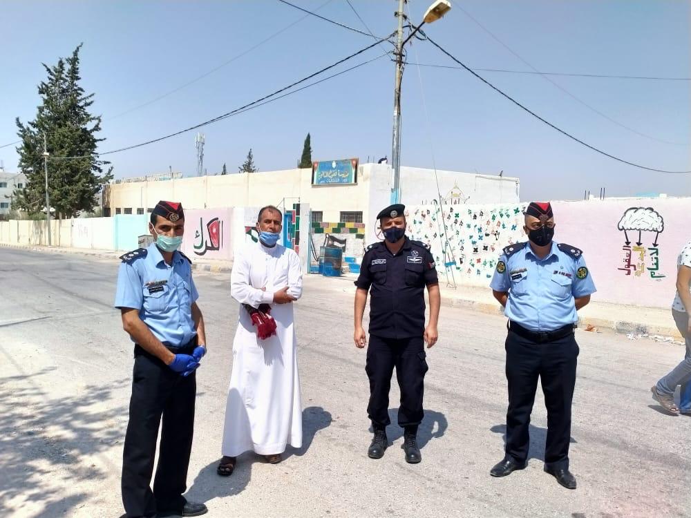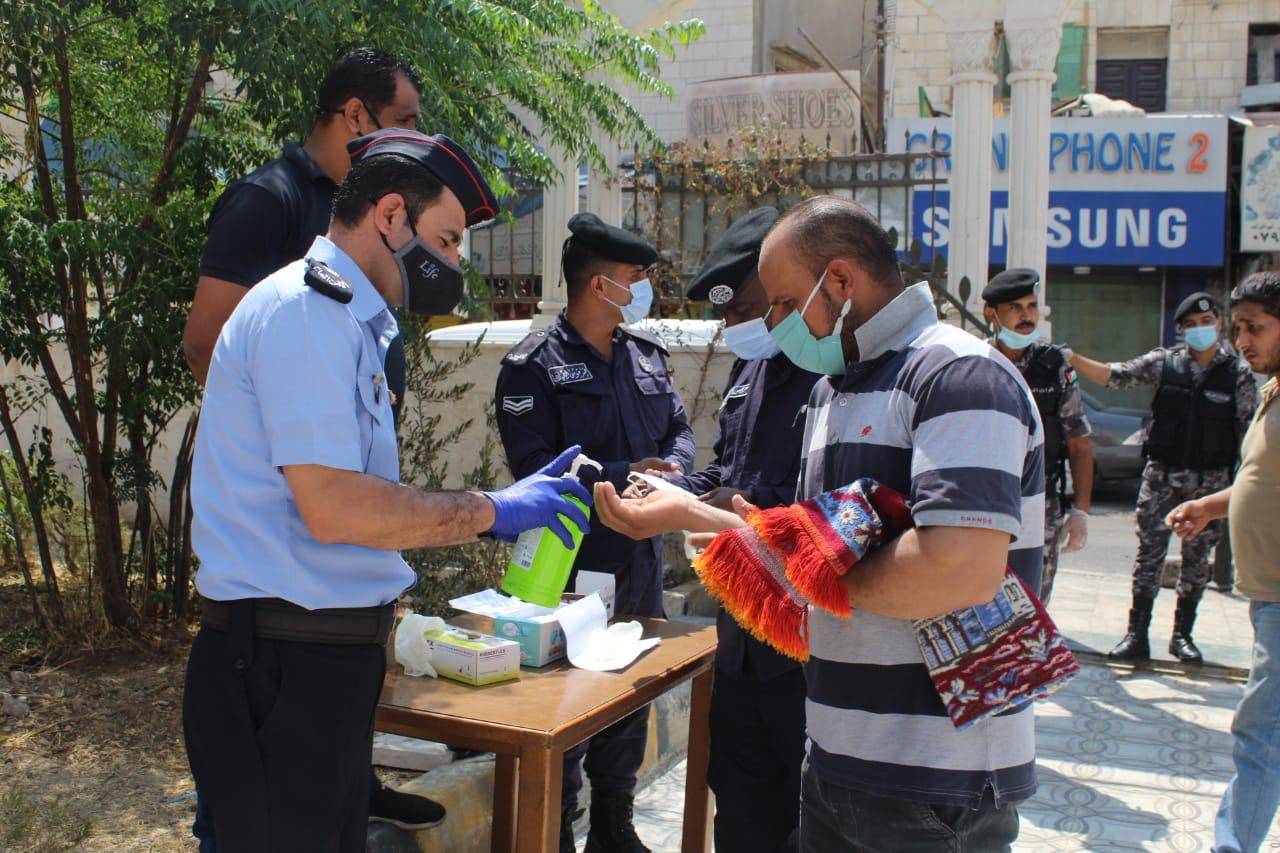 كما وقام رجال الامن العام بتوزيع وسائل السلامة العامة من كمامات ومعقمات على المصلين ، واظهر المصلين استجابة كبيرة مع رجال الامن العام والتزام بقواعد السلامة والصحة العامة