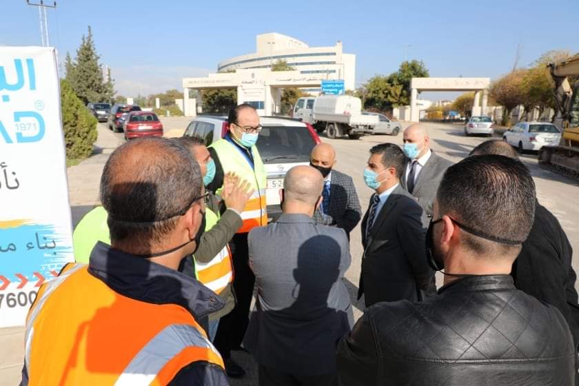 قام وزير المياه والري الدكتور معتصم سعيدان يرافقه امين عام سلطة المياه بالوكالة المهندس احمد عليمات ومدير ادارة الأزمات والسيطرة السيد ابراهيم عبادة، خلال زيارة ميدانية مبكرة صباح يوم السبت الموافق 28/11/2020 بتفقد اعمال تنفيذ ايصال خدمات المياه والصرف الصحي التي تنفذ لخدمة المستشفى الميداني في حرم مستشفى الامير حمزة ، حيث التقى بالموقع كل من الدكتور وائل الهياجنة مسؤول ملف كورونا في وزارة الصحة والرئيس التنفيذي لشركة مياهنا المهندس محمد العوران .
