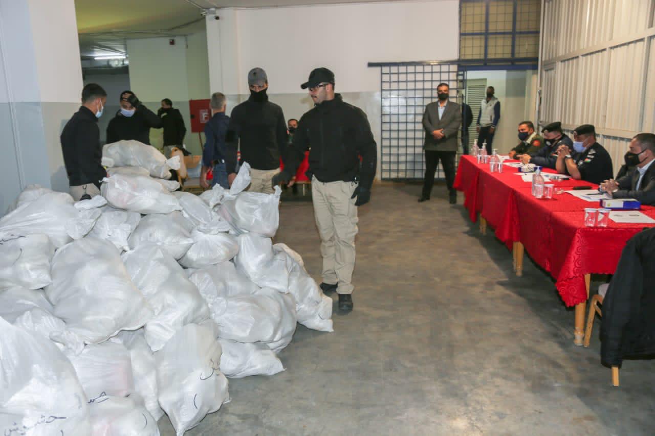 وأشرف على عملية الإتلاف لجنة خاصة برئاسة مساعد مدير الأمن العام للموارد البشرية والتدريب العميد الدكتور خالد العجرمي ومدير إدارة المختبرات والأدلة الجرمية العميد المهندس محمد العمري ومدير إدارة مكافحة المخدرات العقيد حسان القضاة ومدعي عام محكمة امن الدولة .
