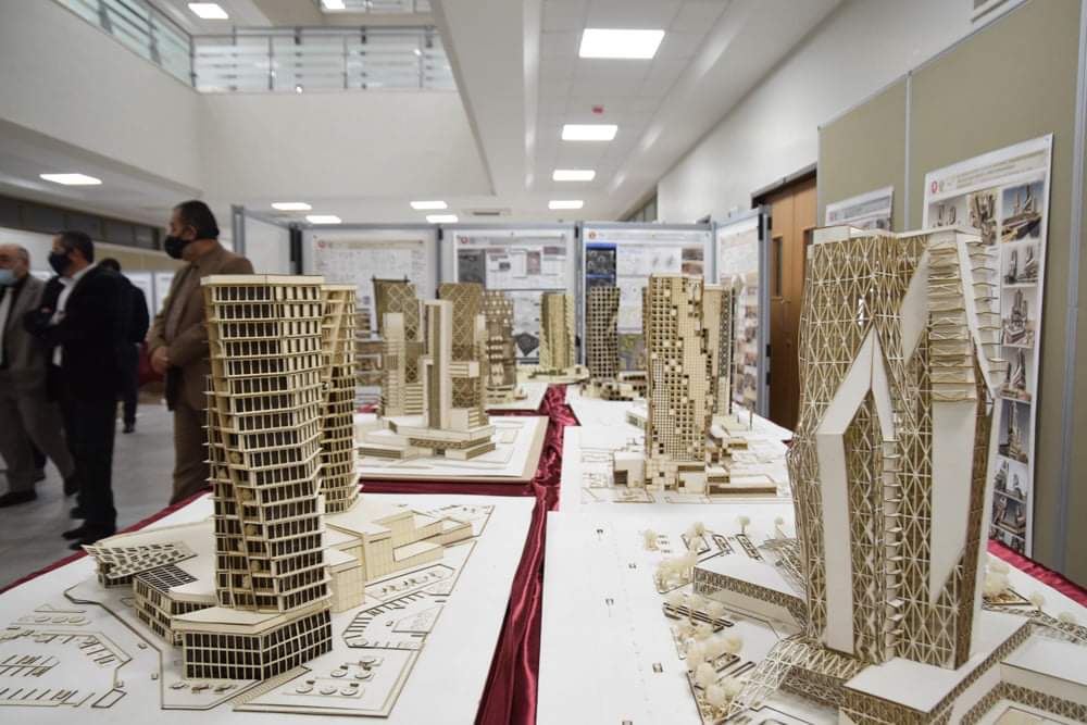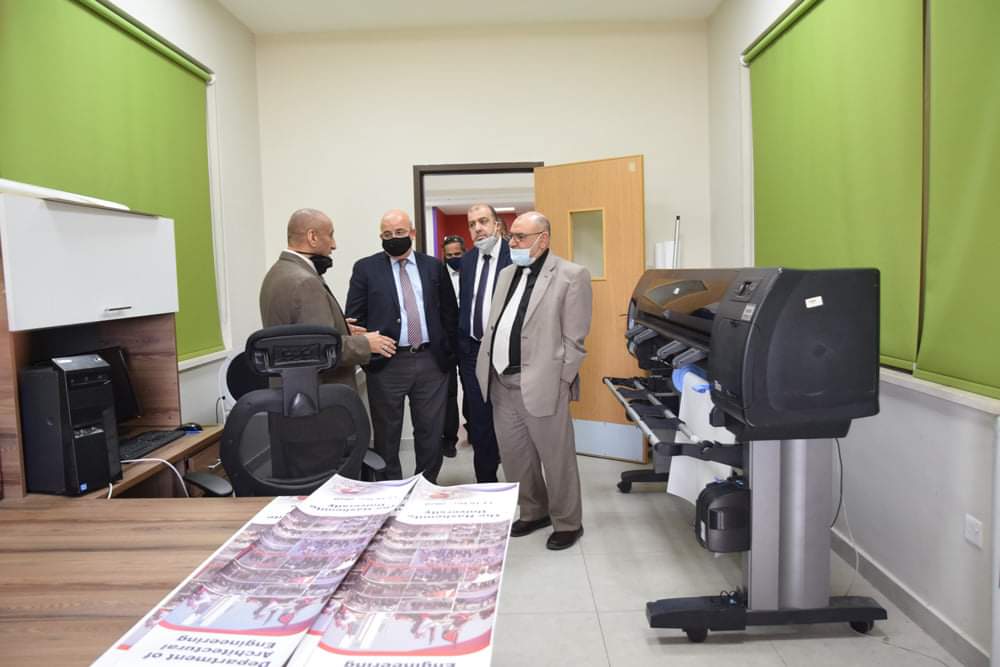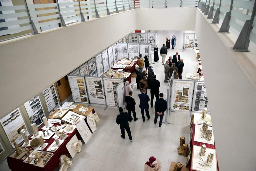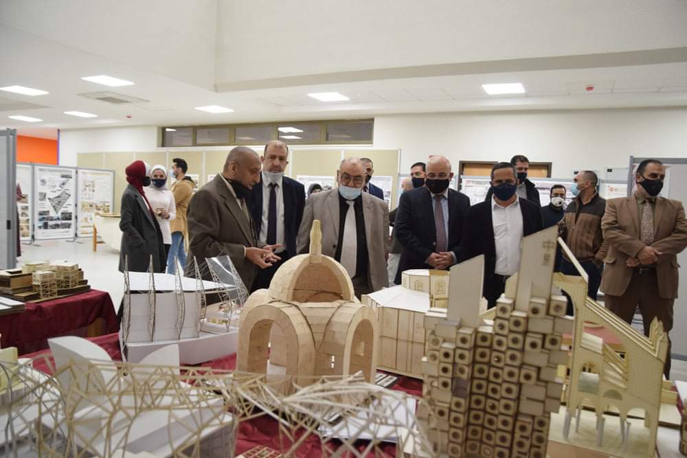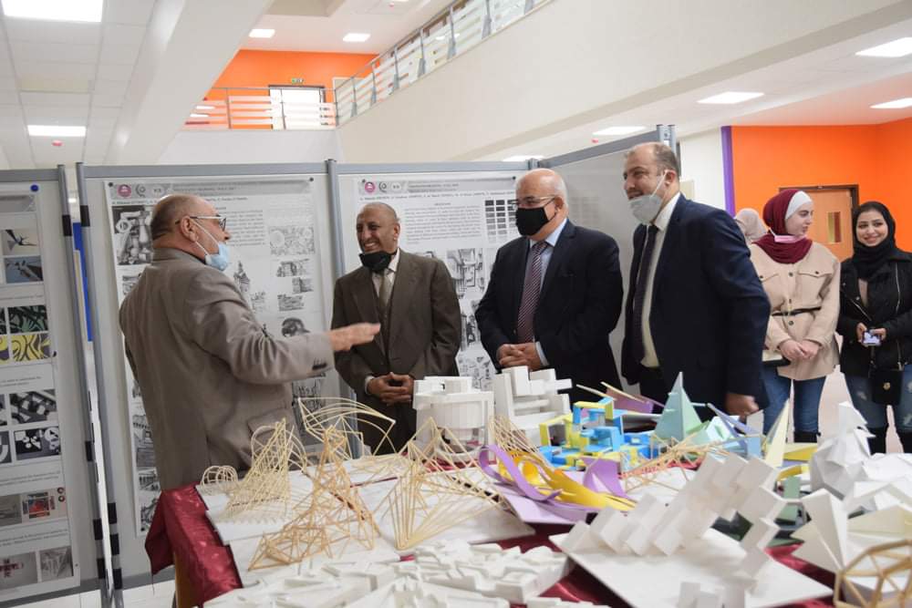 كما تجول في المعرض المخصص لنتاجات ومشاريع طلبة هندسة العمارة في مختلف السنوات.