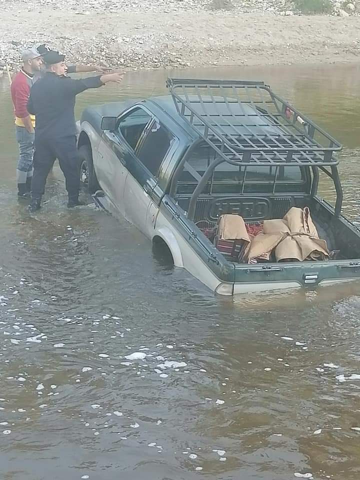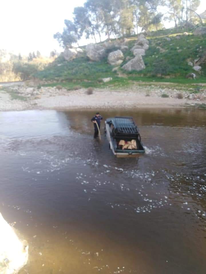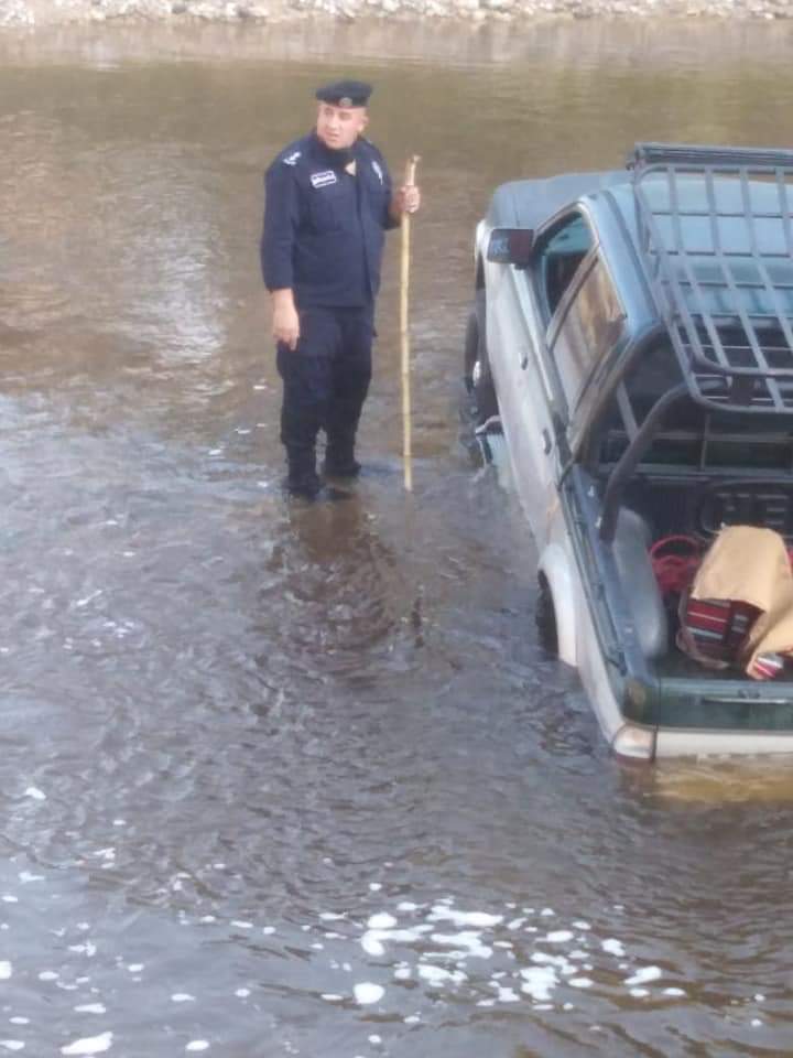 على اثر ورود بلاغ عن وجود احد المركبات عالقه داخل مجرى سيل جرش أثناء عبوره وبداخلها عائله ويوجد خطوره على الأشخاص كون المركبه يتزايد دخولها وغرقها بالماء .