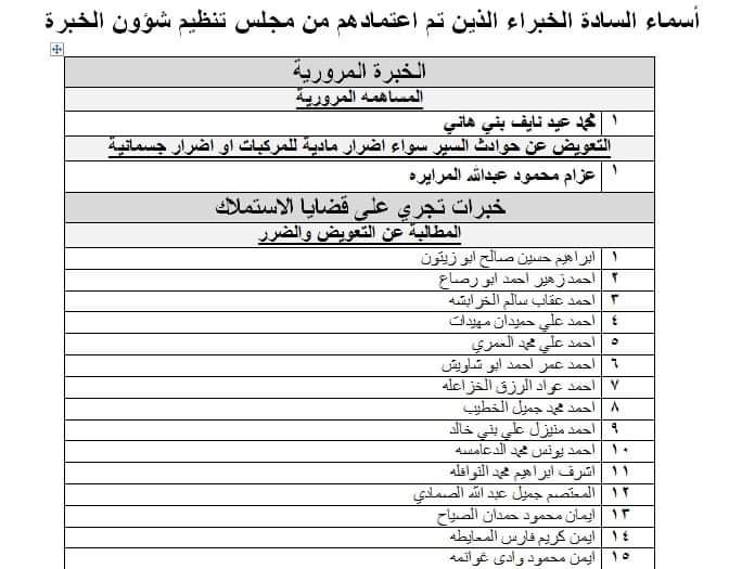 تحديد خبراء لدى محاكم العدل (اسماء)