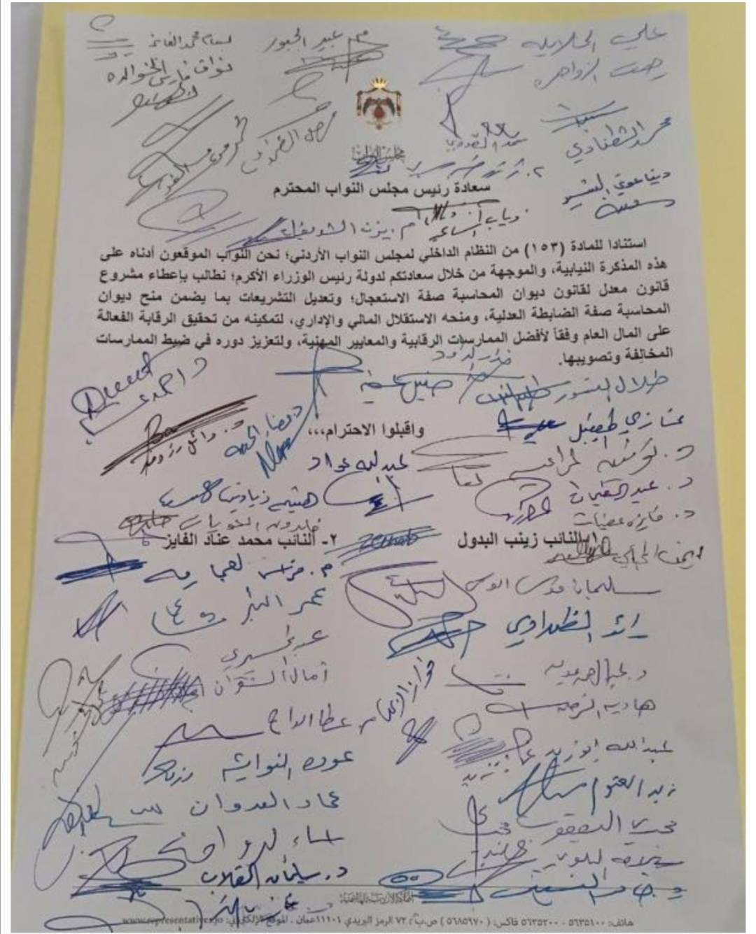 طالب 47 نائبا في مدة تبناها النائبان زينب البدول ومحد عناد الفايز، رئيس المجلس باعطاء مشروع