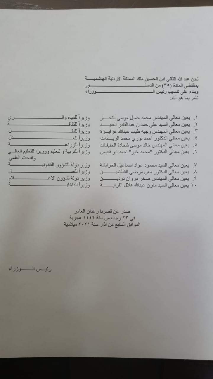 اسماء وزراء حكومة الخصاونة بعد التعديل
