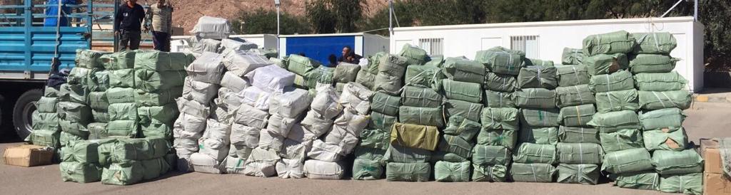 قال الناطق الاعلامي لدائرة الجمارك ان دوريات مكافحة التهريب تمكنت من ضبط شاحنة احتوت على ما يزيد عن( 20 ) الف حذاء ذو منشأ صيني بالاضافة الى 1 طن كاشو وشاشات وكاميرات خاصة بالسيارات ، كانت متجهة للعاصمة عمان.