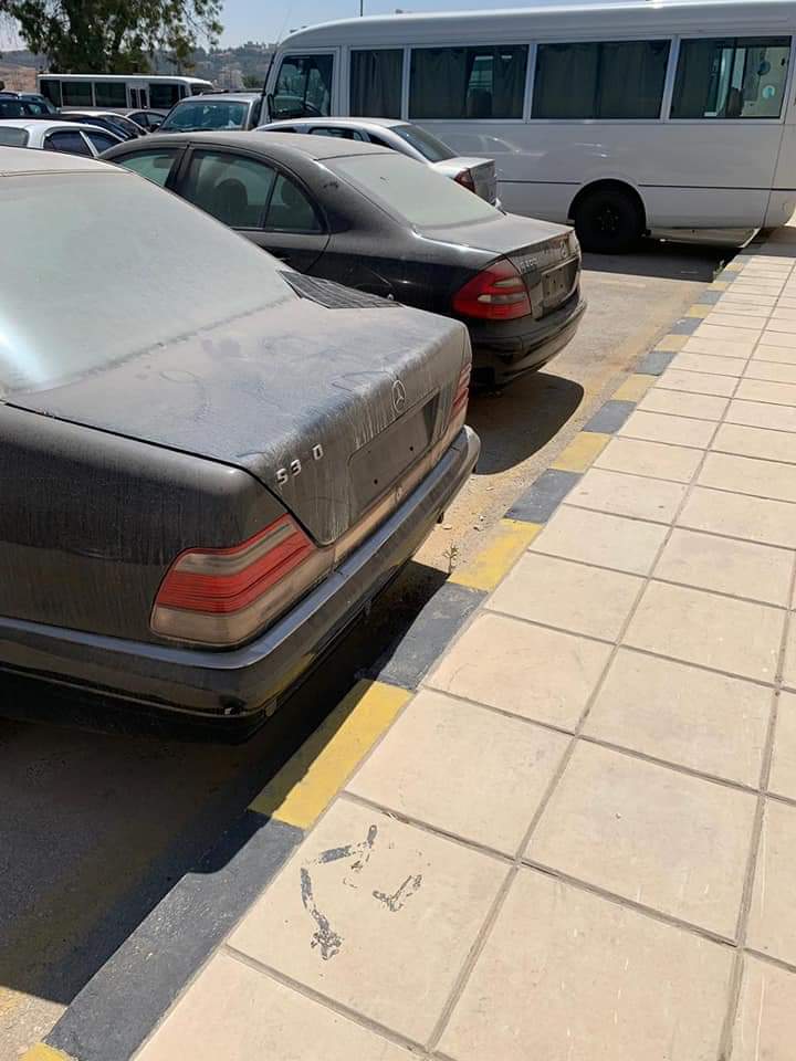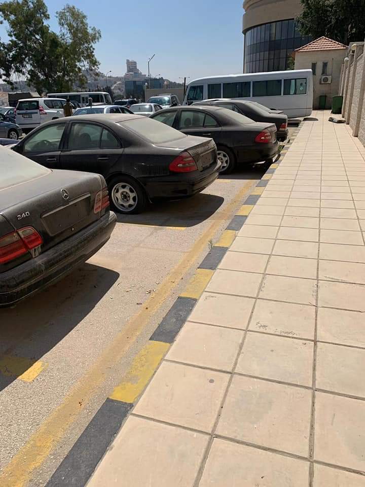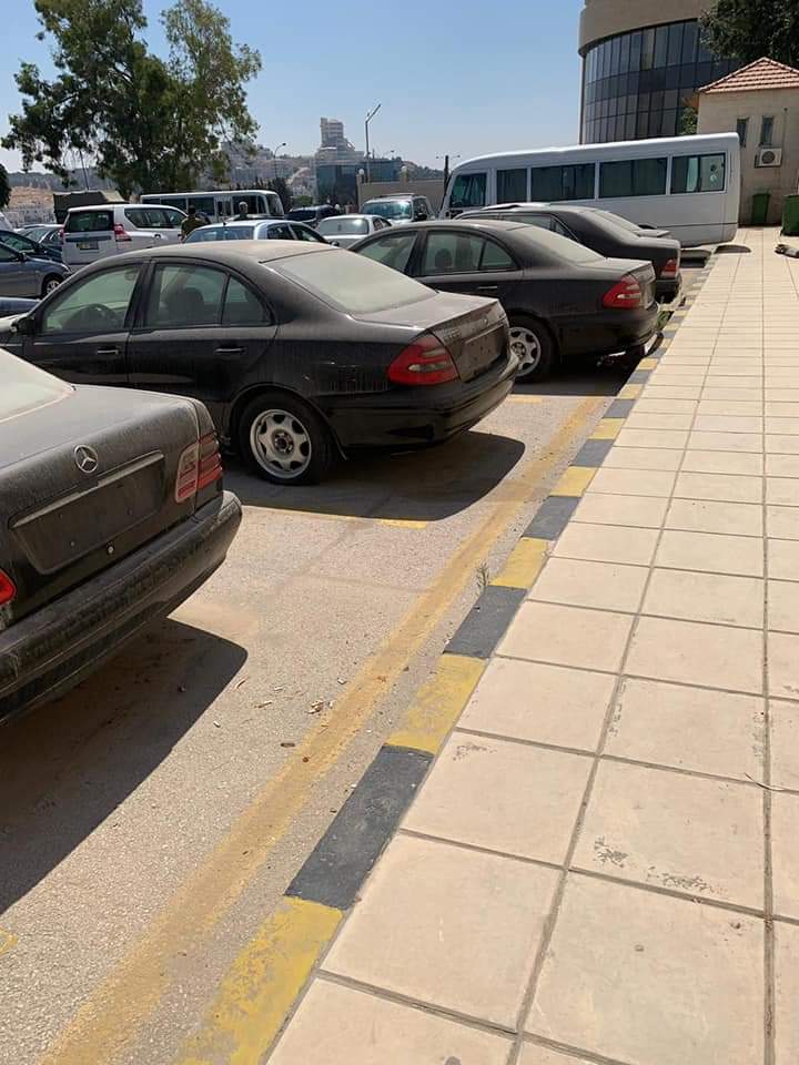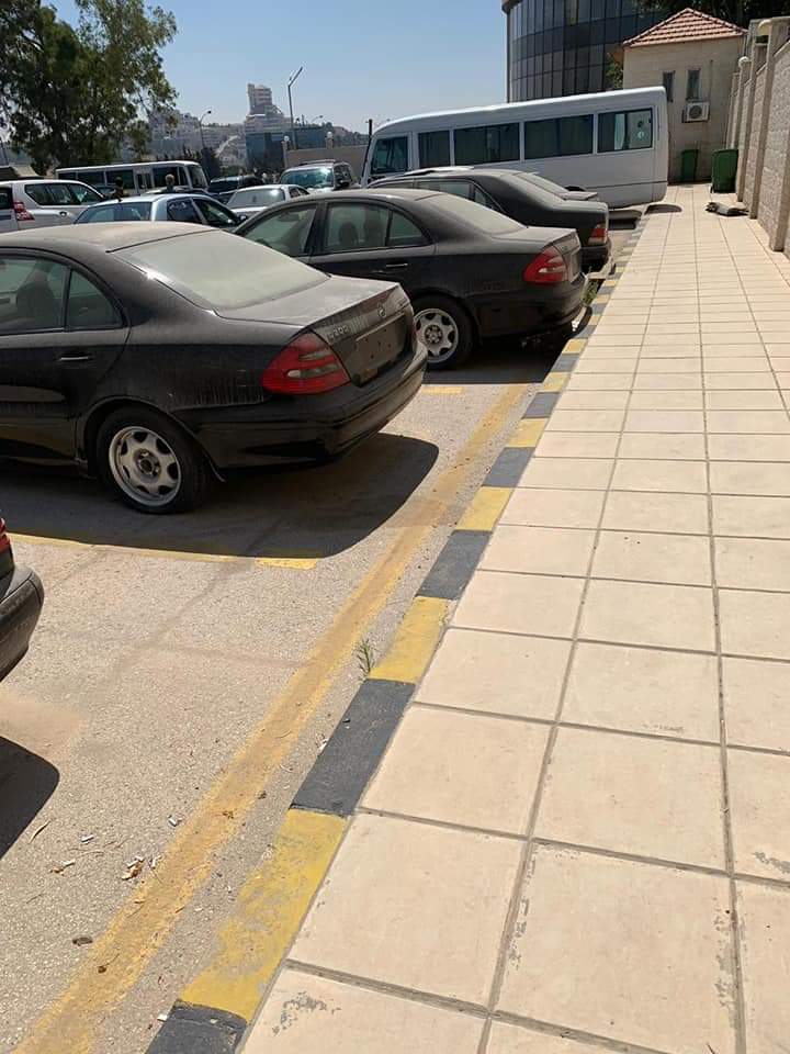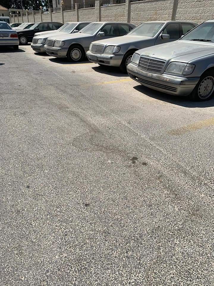 يظهر في الصور مجموعة من السيارات المصطفه منذ فترة طويلة وهي في ساحة الاصطفاف التابع لوزارة الخارجية.